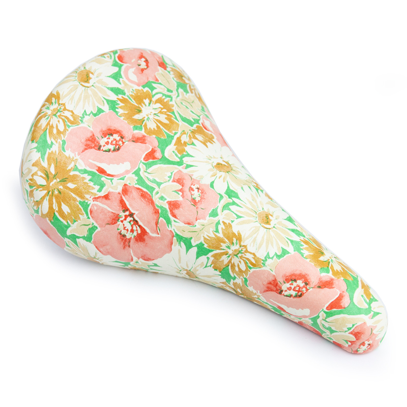 ゴールドのフレームにグリーンのテープの相性が◎ですね、そして一見ド派手な花柄サドルともよくマッチしたこちらのクロスチェック。