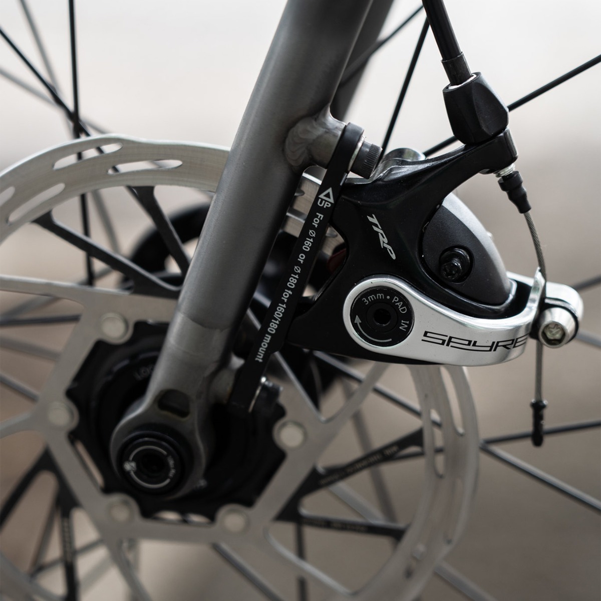 ブレーキは元のロードがリムブレーキだったのでキャリパーを*TRP* spyre flat mount disc brakeのディスクブレーキに新調。
