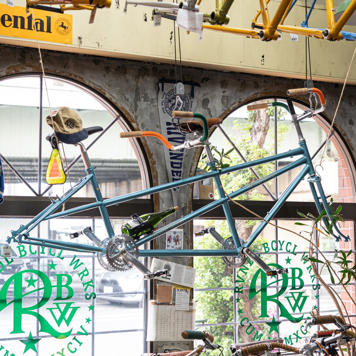 競技用のタンデムと違って頑丈でどこでも走れるようにRivendellらしく太いタイヤが履けるようになってるので、この息ぴったりなオーナー様たちならどこまででも行っちゃいそう。