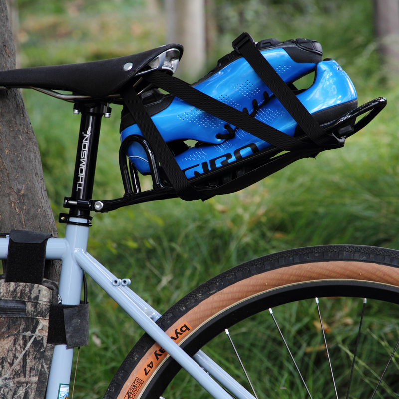 そしてレースシーンでの移動や、普段使うバイクとしてやキャンプにいきたくなっても取り外し簡単で使い勝手調子良さそうなPDWのbindle rackに、同じくFAIRWEATHERの軽量&防水のdrysackを添えてコンプリート