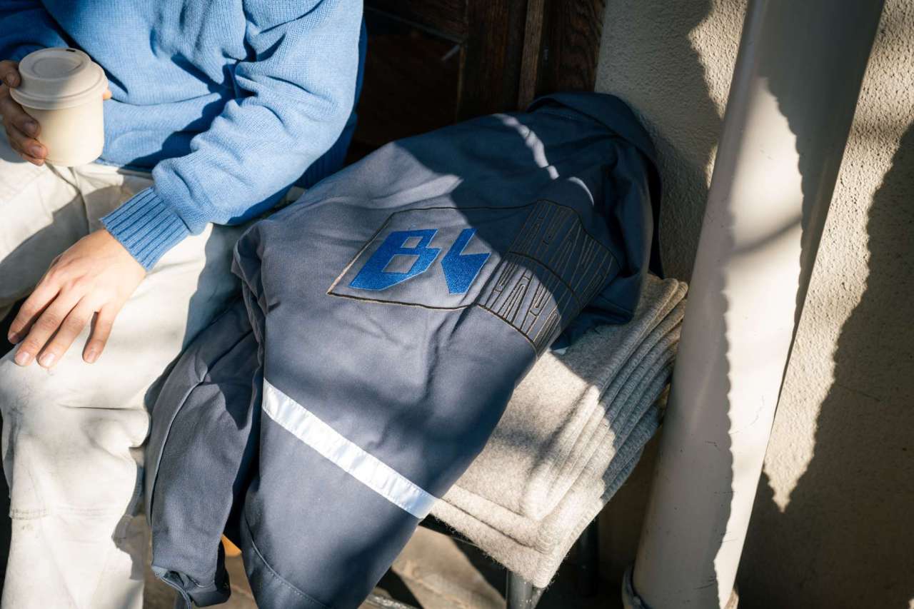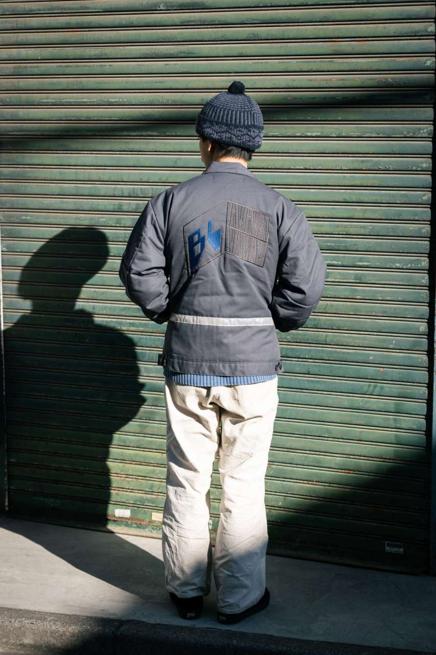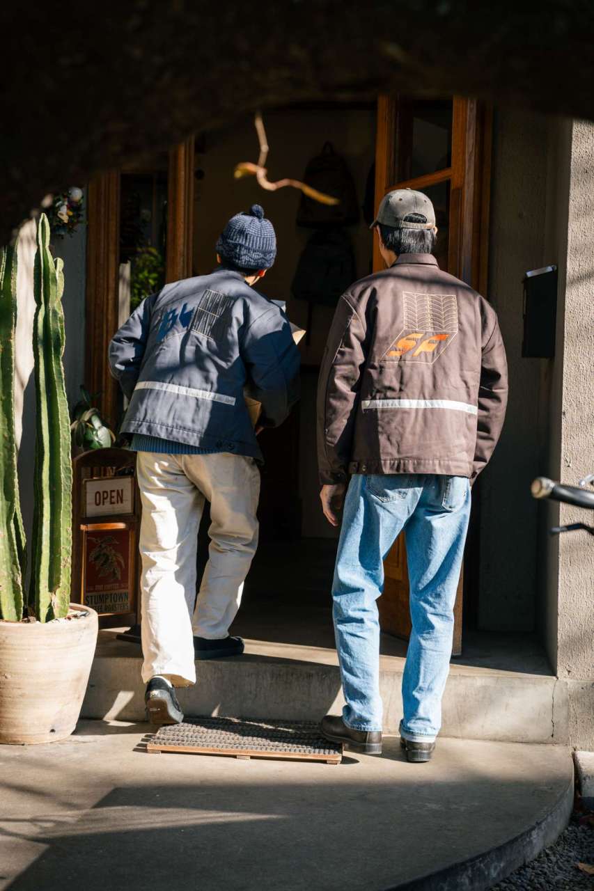 And so we made work jackets! Jeffrey’s work is embroidered hugely on the back of Red Kap work jackets and we’ve added a reflective tape on the lower back area. Gotta have some bikey detail right?