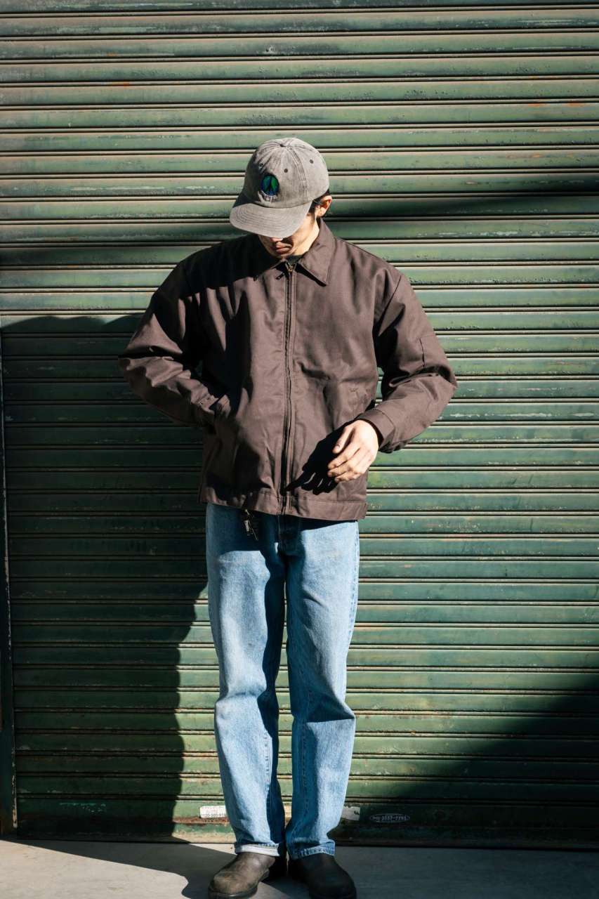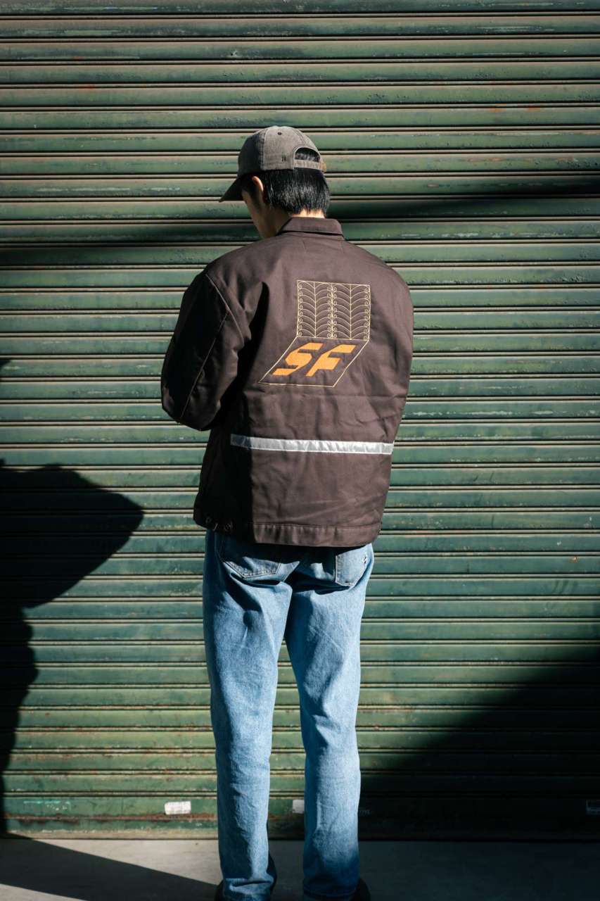 And so we made work jackets! Jeffrey’s work is embroidered hugely on the back of Red Kap work jackets and we’ve added a reflective tape on the lower back area. Gotta have some bikey detail right?