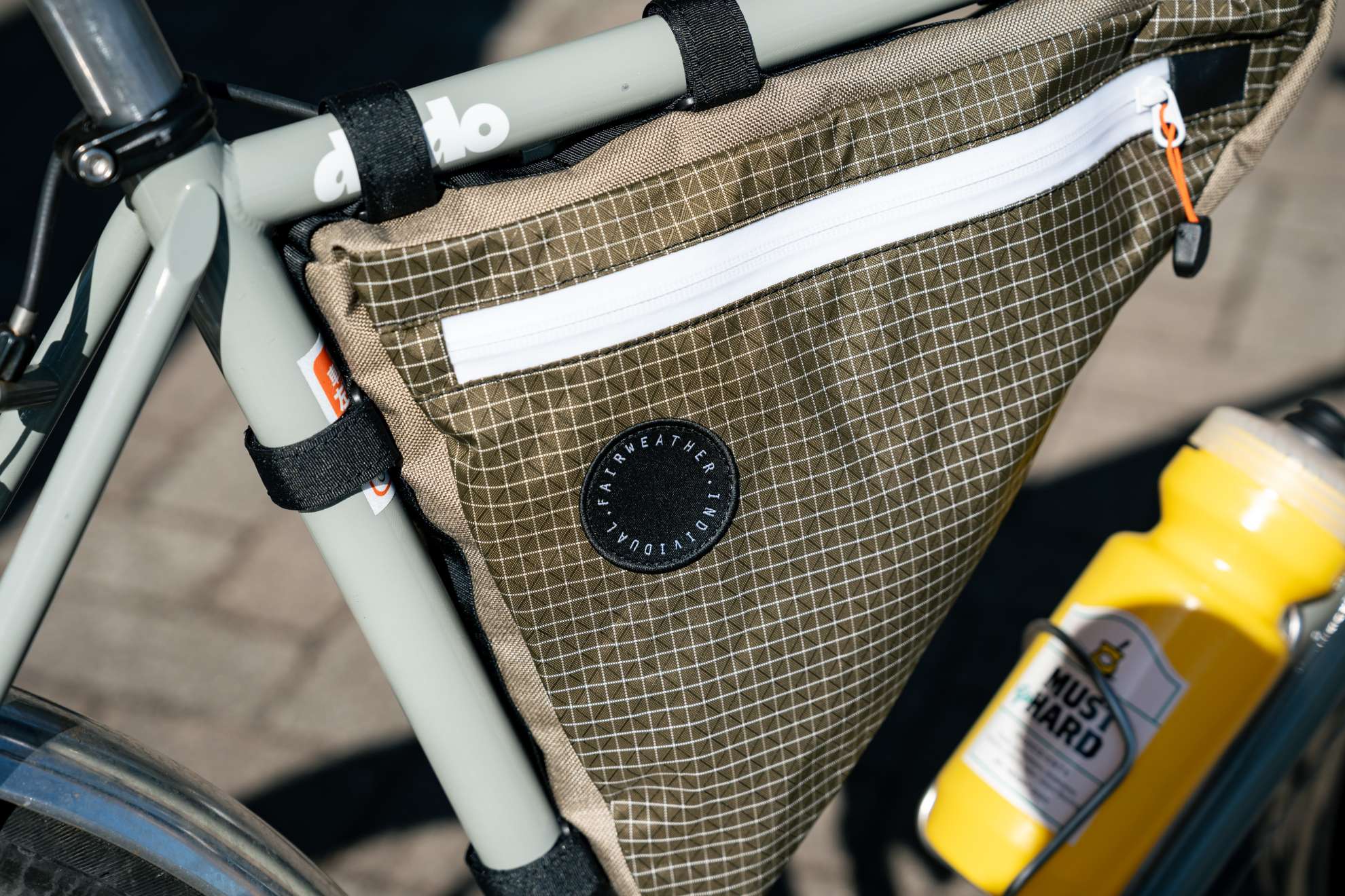 The stem bag on my Derecho is the*FAIRWEATHER* stem bag (rip olive), which is the same color as the frame bag. There’s also the *FAIRWEATHER* all terrain pannier (beige) that would match with the two. I’d love to see you combine these bags for your trips .