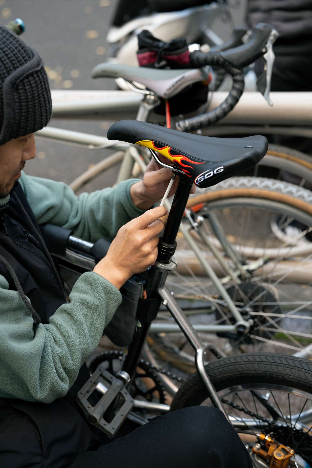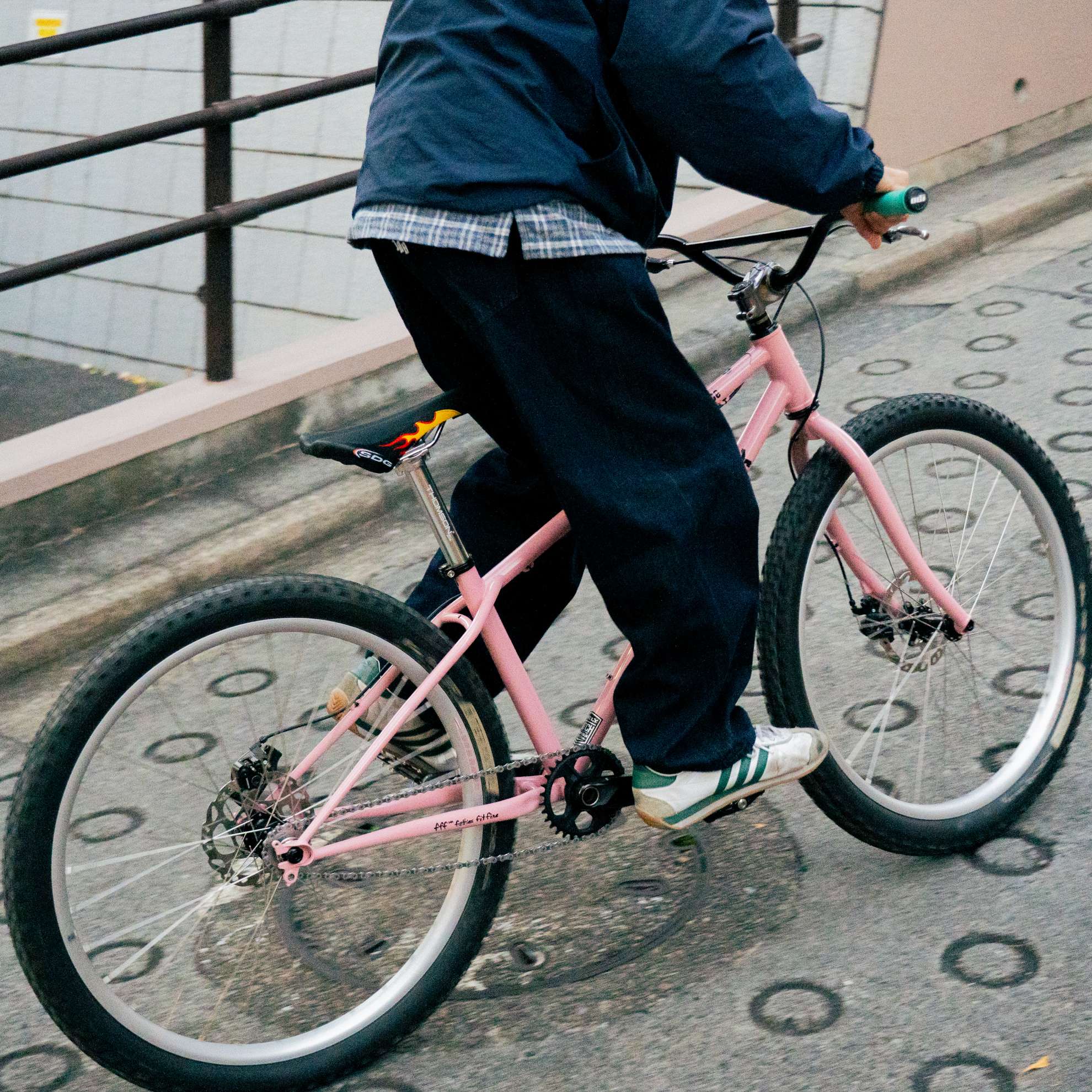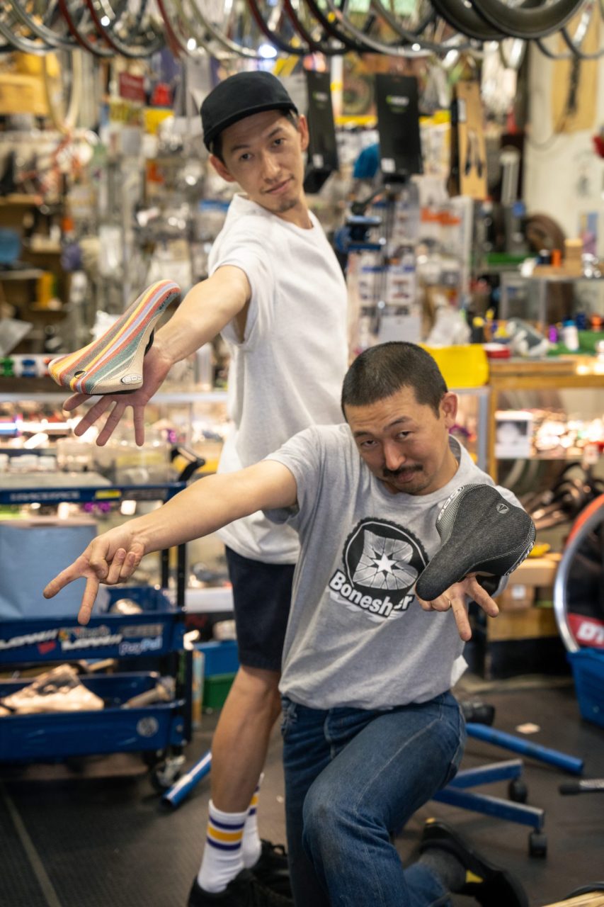 Dunk chose the cow pattern for his Lowside. There’s no way that these saddles won’t look good on mountain bikes. Funny how his shoes and bike are matching colors. I personally think tilting the nose of the saddle up like Dunk for comfort.