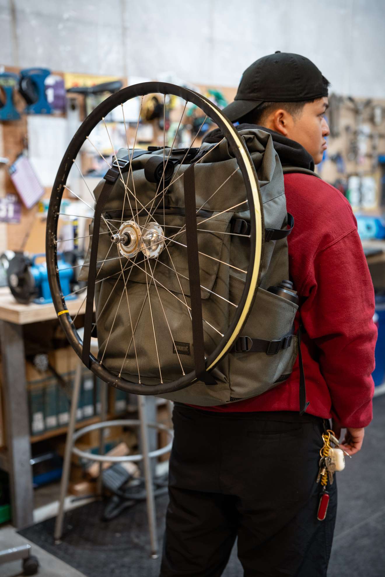 Using the outer straps, you can also secure bigger stuff like wheels or frames that don’t fit inside the bag, there are various ways to use the bag depending on your ideas.