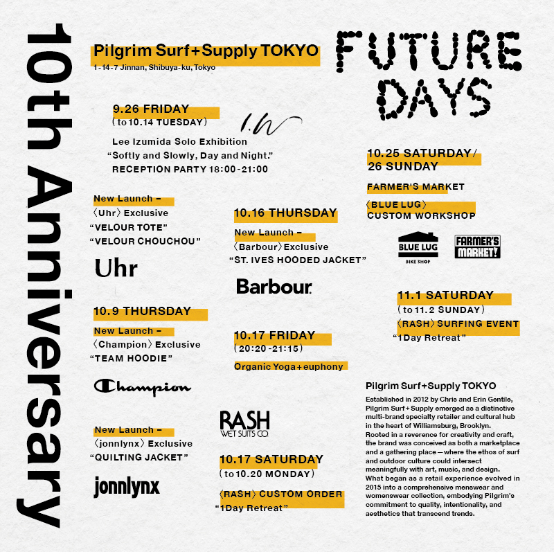 いつもお世話になっているPilgrim Surf+Supply TOKYOさんが10月1日で10周年を迎えられました。