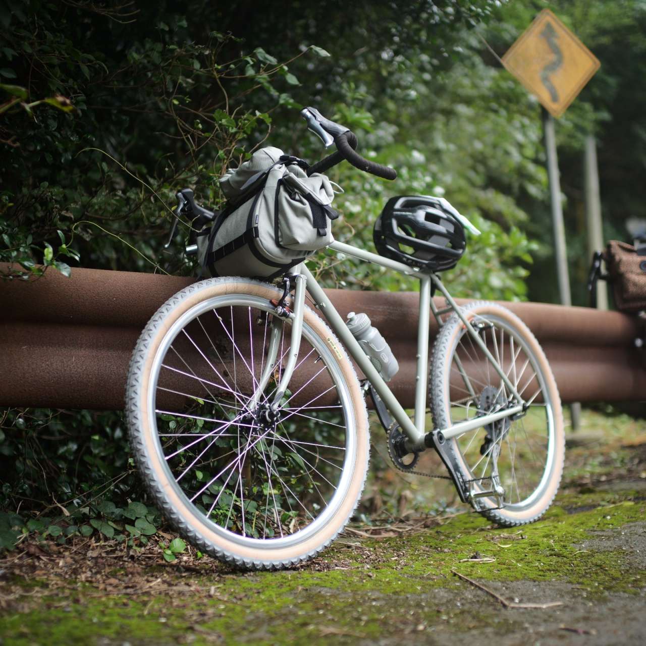 出番の無くなっていた*CRUST BIKES* towel rack barがハイライトですね。ワイドなハンドル幅を活かして*FAIRWEATHER* handlebar bag ADVをオンしています。ヘッドチューブが長いのでバッグとタイヤのクリアランスもスペーサーを極端に積まずとも確保出来るのでバイクのルックスもグッドです。分かってる~。