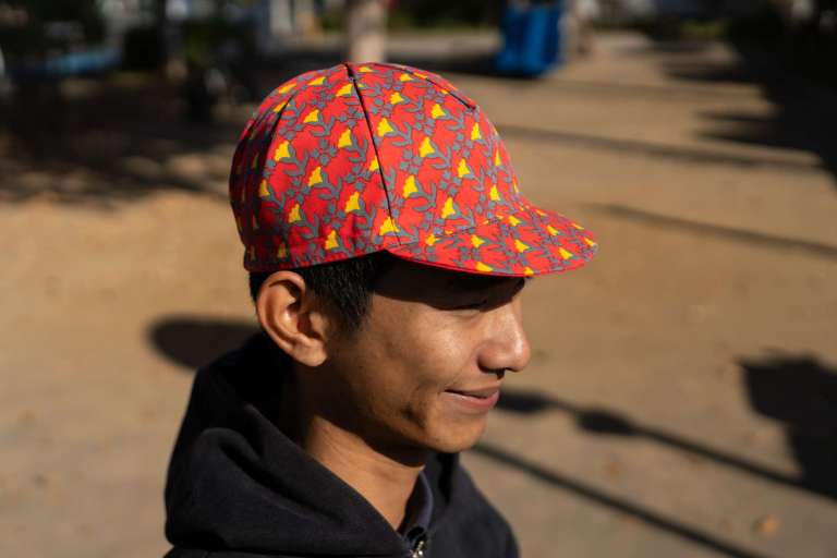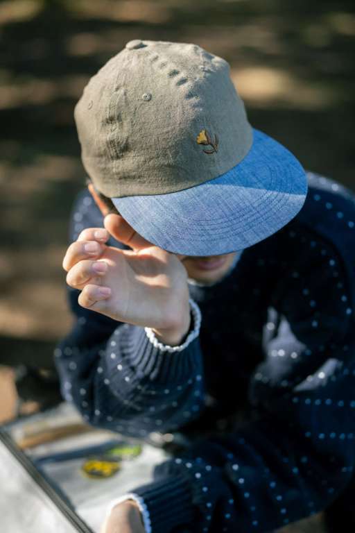 ロニーの要望で日本のリネン素材を使用し作られるキャップ。
