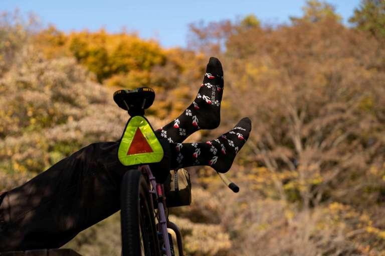 荷物を減らしたいキャンプライドなどで、メリノの防臭性と速乾性頼みで数日履き続ける時も助かる。悪天で濡れても乾きが早くて救われることもしばしば。