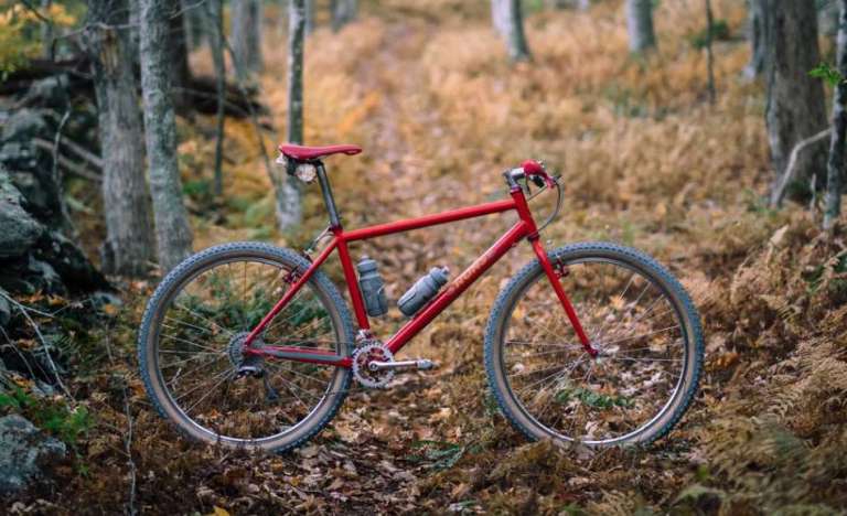 現代的なレース用ジオメトリーをリジットで再現した登りも下りも楽しめるXC MTBだそう。もちろんリムブレーキ!