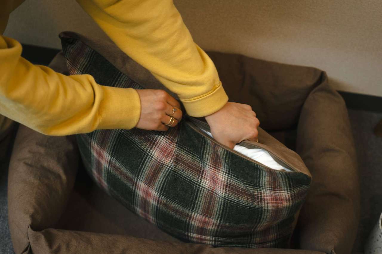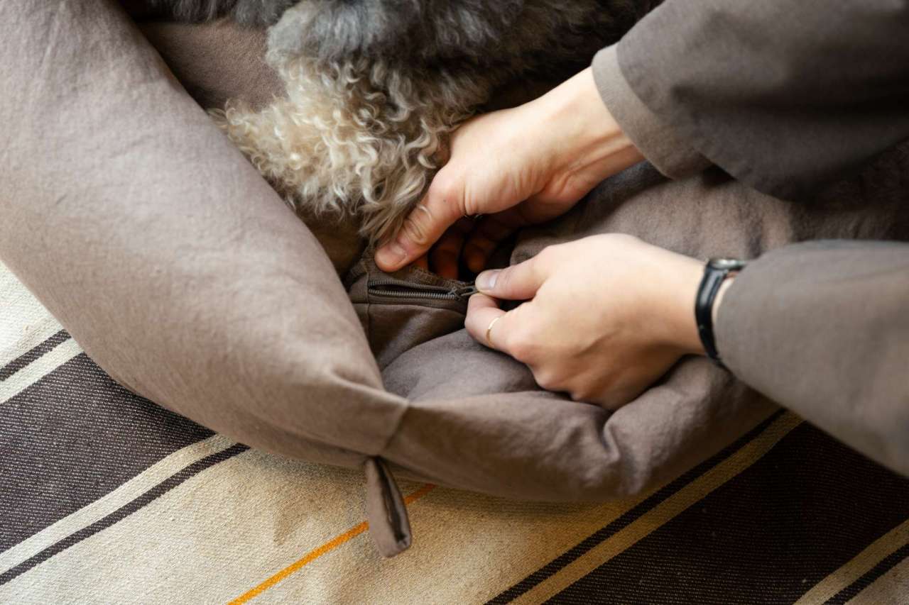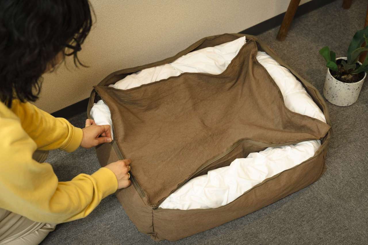 ベッド本体と中心クッションどちらにもファスナーが付いていて、クッションの出し入れが可能なので、汚れたらカバー単体でのお洗濯も可能です。