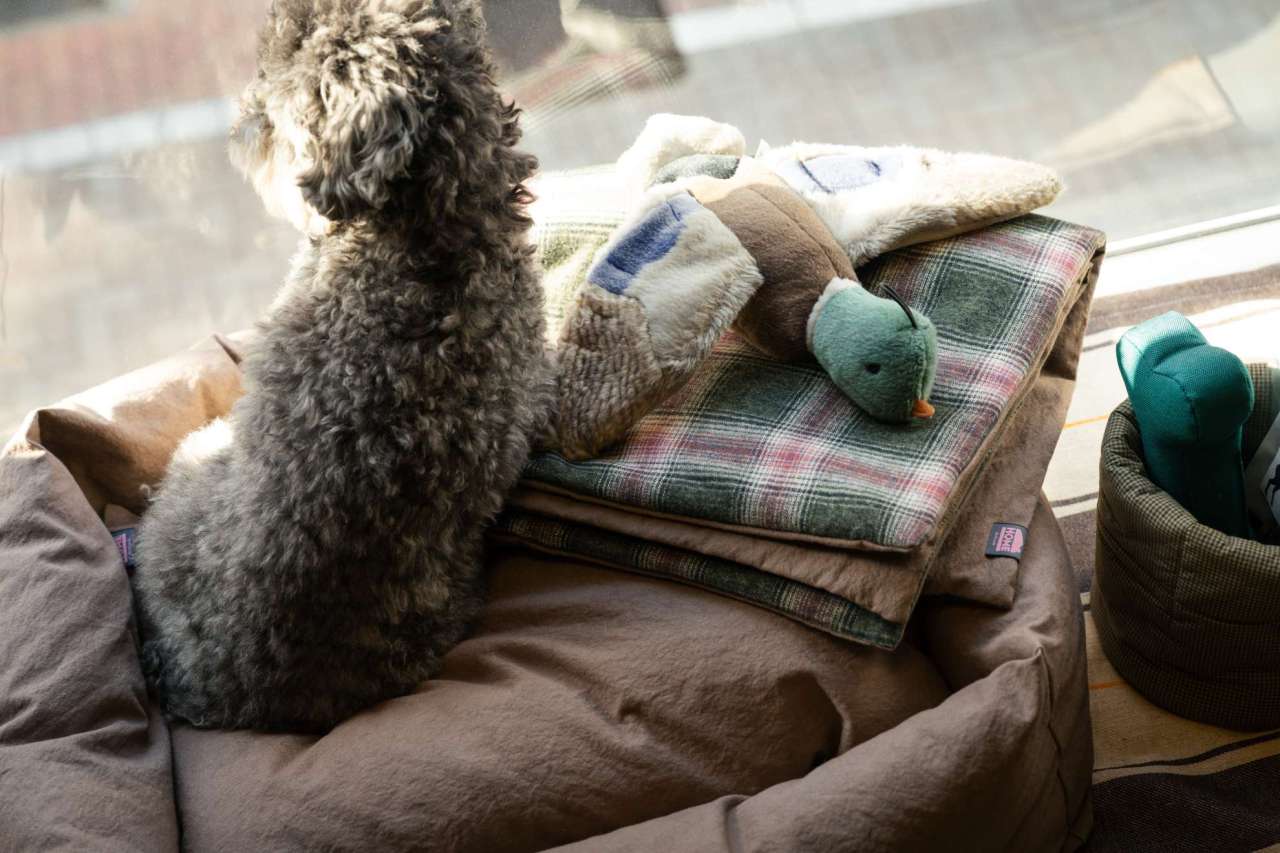 すぐにお持ち帰りいただける在庫のご用意もしておりますが、dog bedは圧縮されたクッションを含めると大きな荷物になりますので、色のご検討はお店で、ご購入はオンラインストアをご利用いただくのもおすすめです。