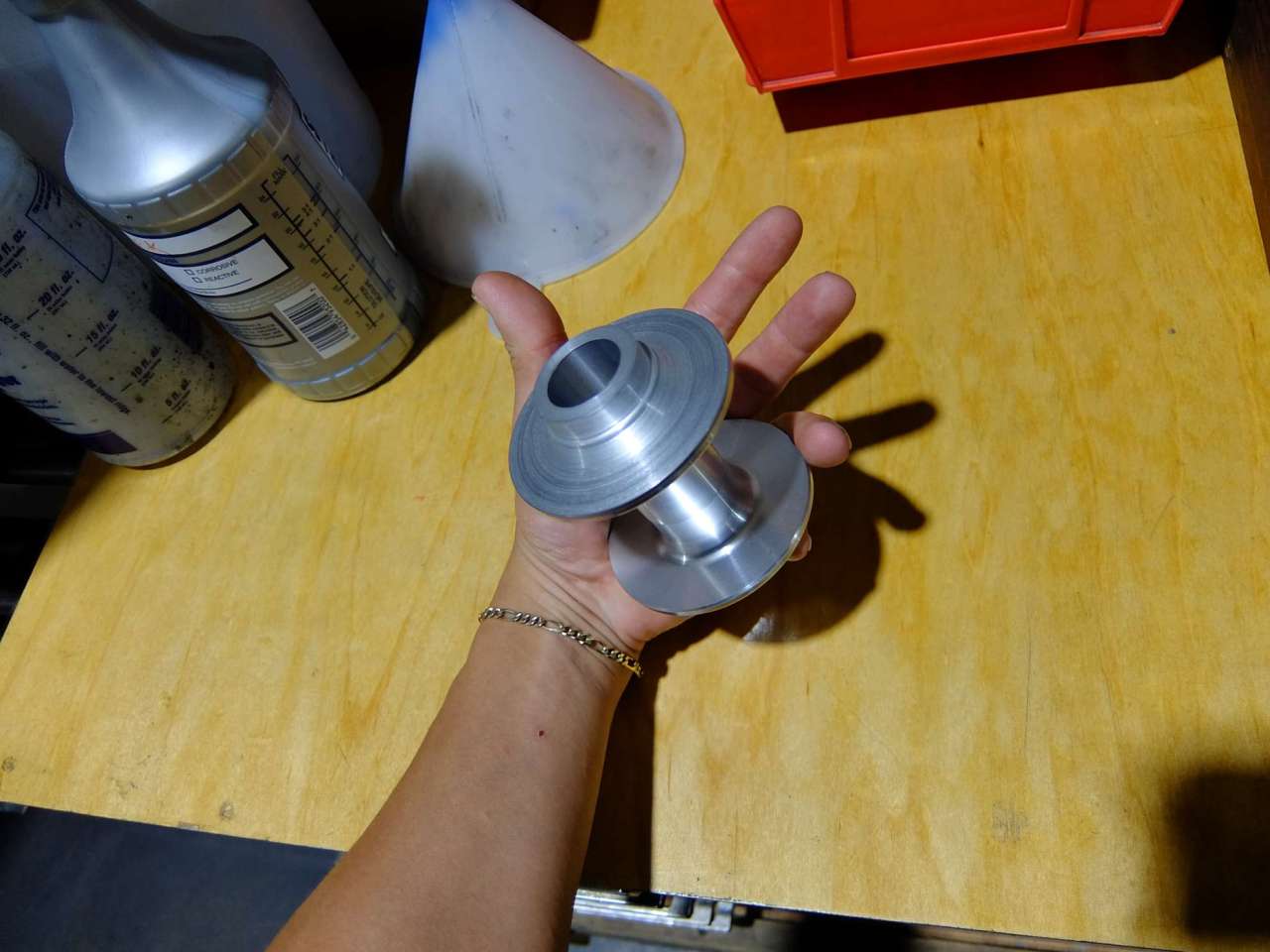 「このアルミの塊をコレで削って、形にするんだよね。」と見せてくれた切削機械とアルミインゴット。