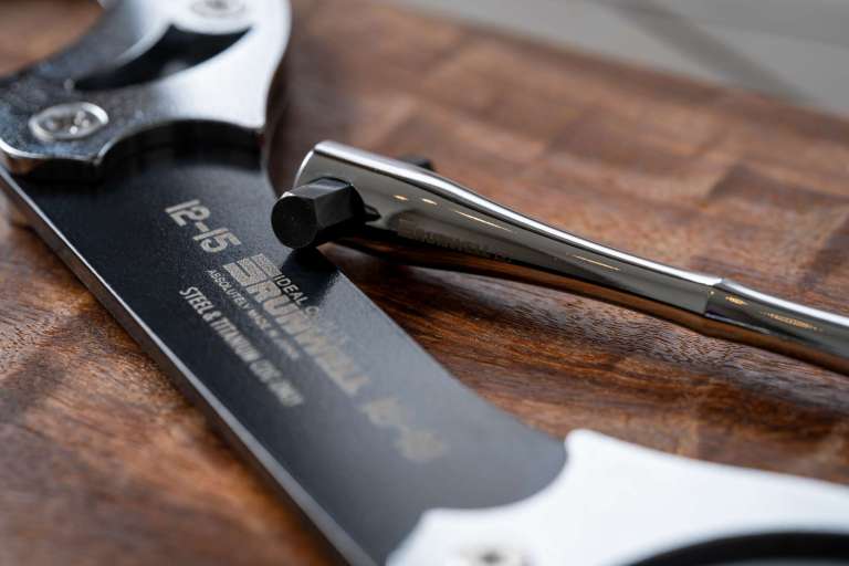 ピカピカと綺麗に磨き上げられた質感は手に馴染み握りやすい、グリスなどで汚れてもサッとヒト拭き