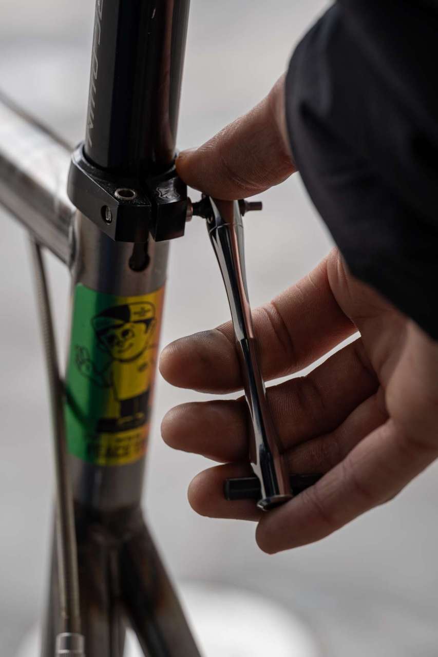 ハンドルとシートポストは定番のTHOMSONですが、eliteの上位互換でもある masterpiece seatpost