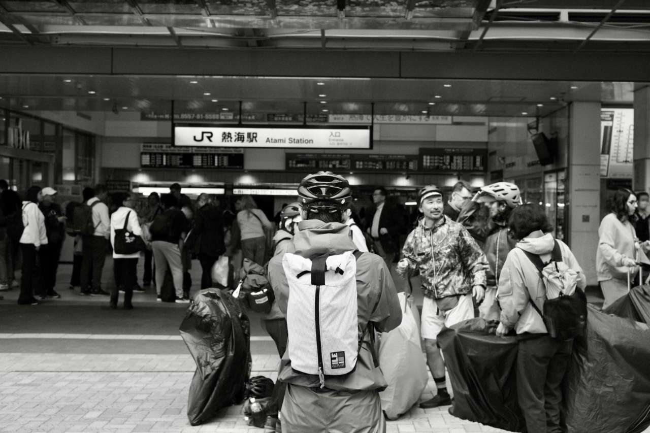 下田駅から南伊東駅まではサイクルトレイン出来るのですが、ぼくらはそのまま熱海駅まで行く為このタイミングで輪行袋へ自転車を詰めることに。