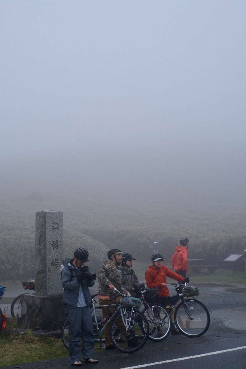 10m先もろくに見えない、しっかり雨に打たれながらも無事に仁科峠の展望台に到着。