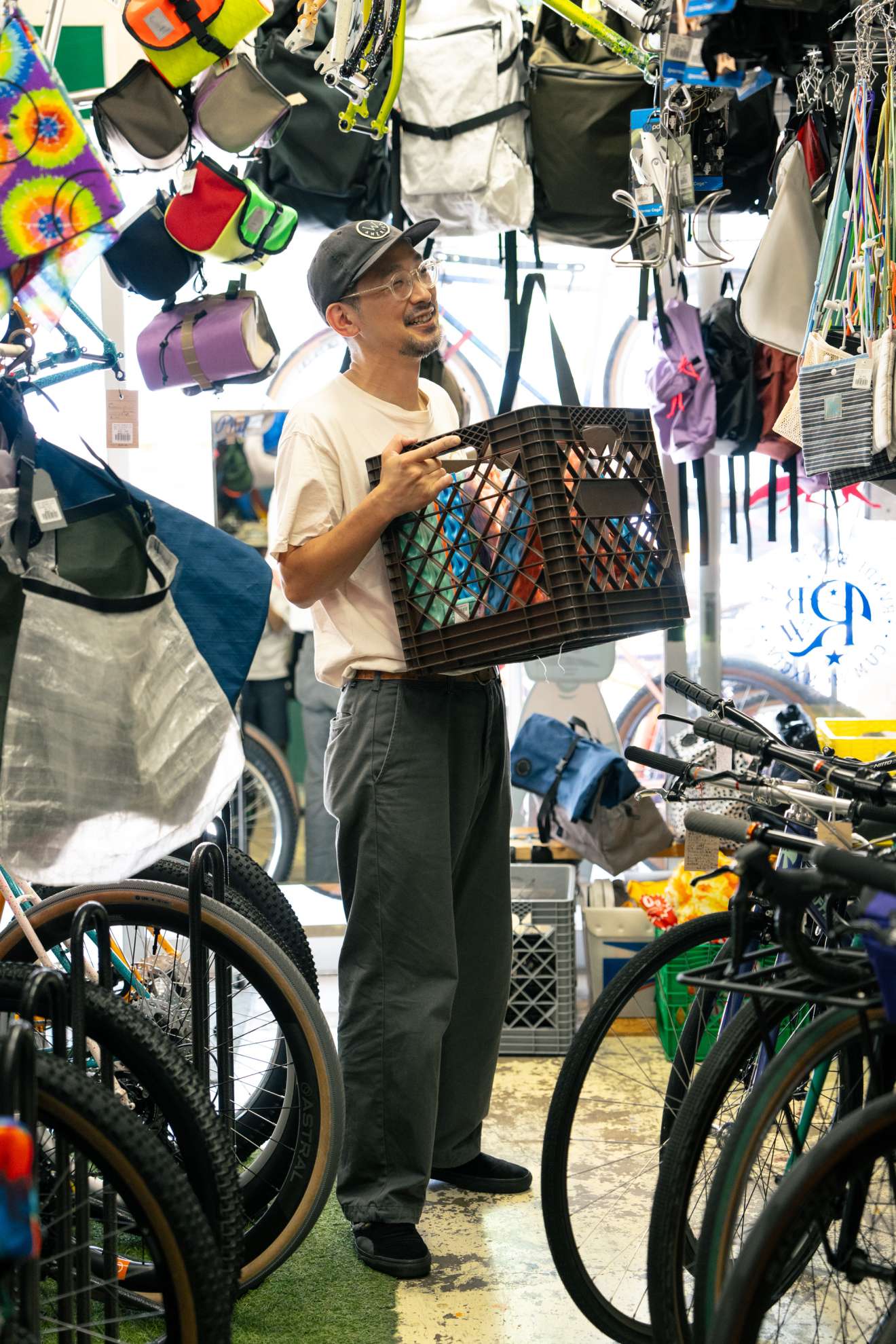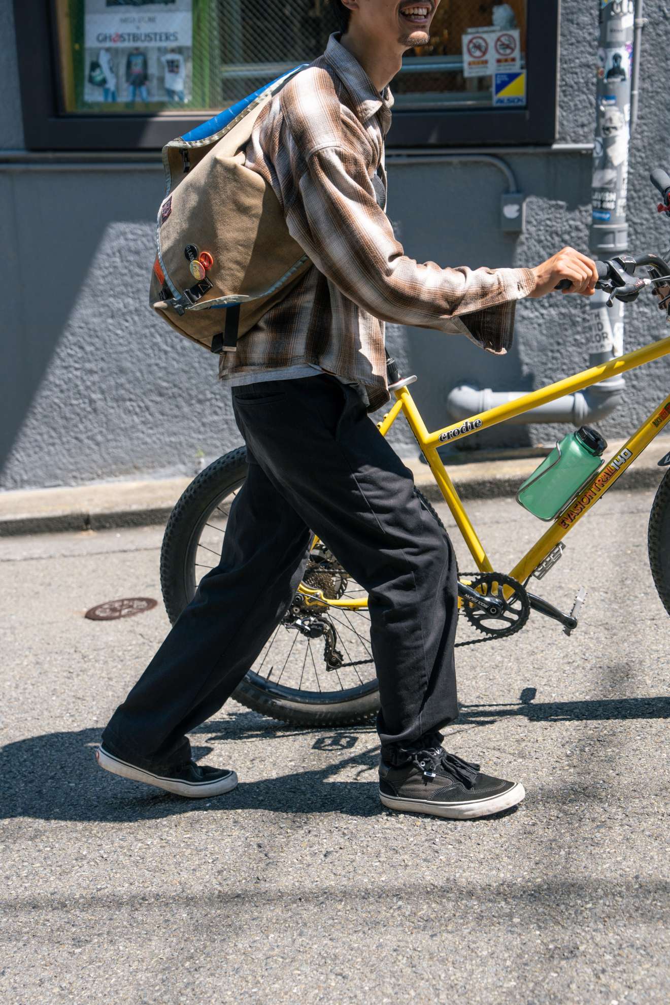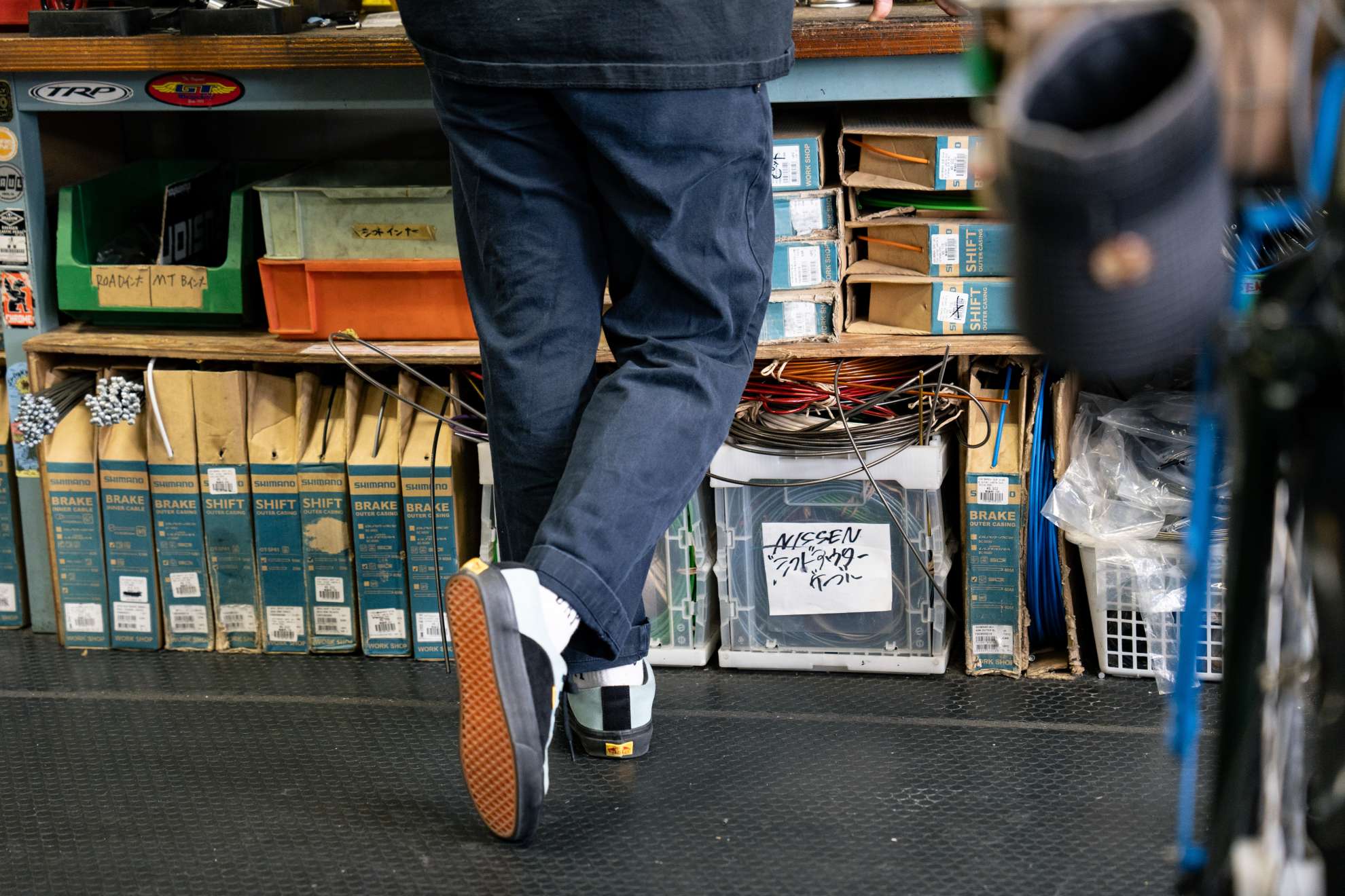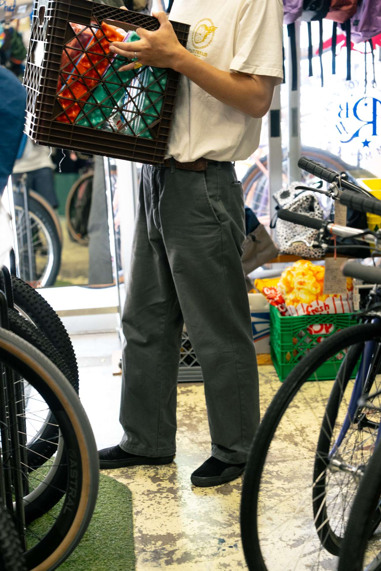 このバイクパンツも汚れやすい自転車屋という環境で働く自分たちの為でもあるので、このパンツのブラックは必然でした。