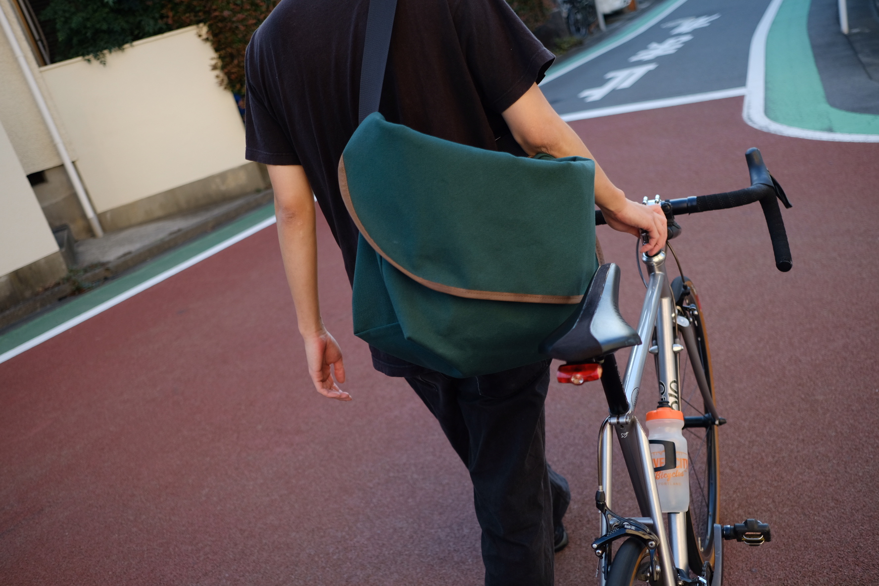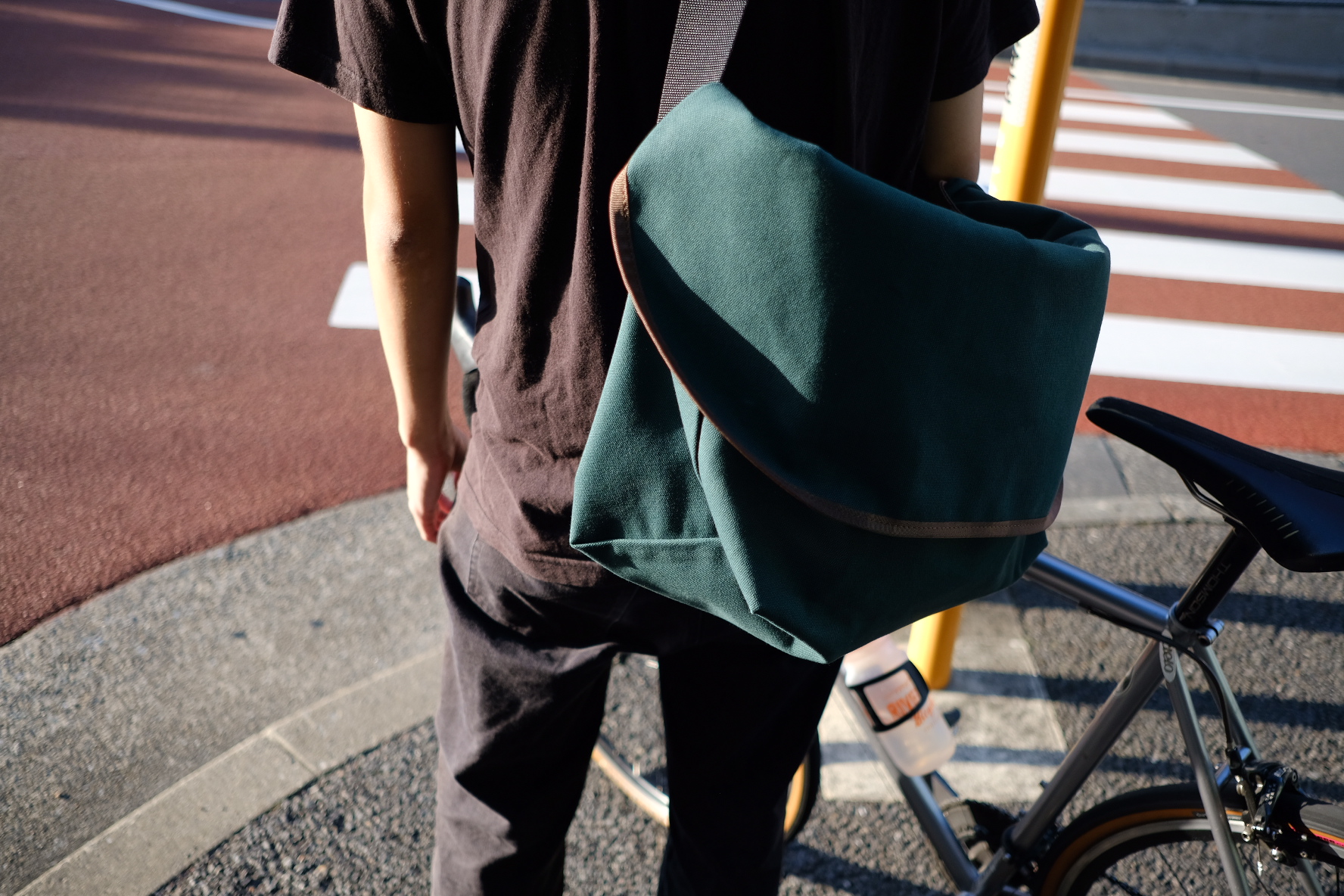 毎年、様々な生地でこのメッセンジャーバッグを製作して来ましたが、今年はキャンバス生地に戻って来ました。海外から取り寄せた「Juniper」(ブリティッシュ・グリーン)という色名のキャンバス・ファブリック。