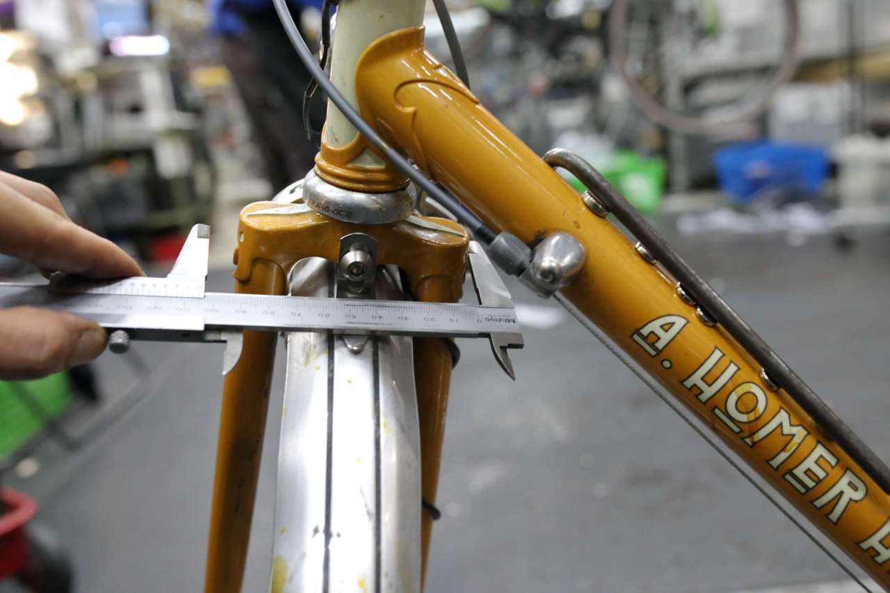 新SAM良いなあ、このHOMERとの対比も面白いなあと夜がふけていく、僕のHOMERも旧SAMと同じ細いフォーククラウンなんだよな、ノギスをあてがってみます。