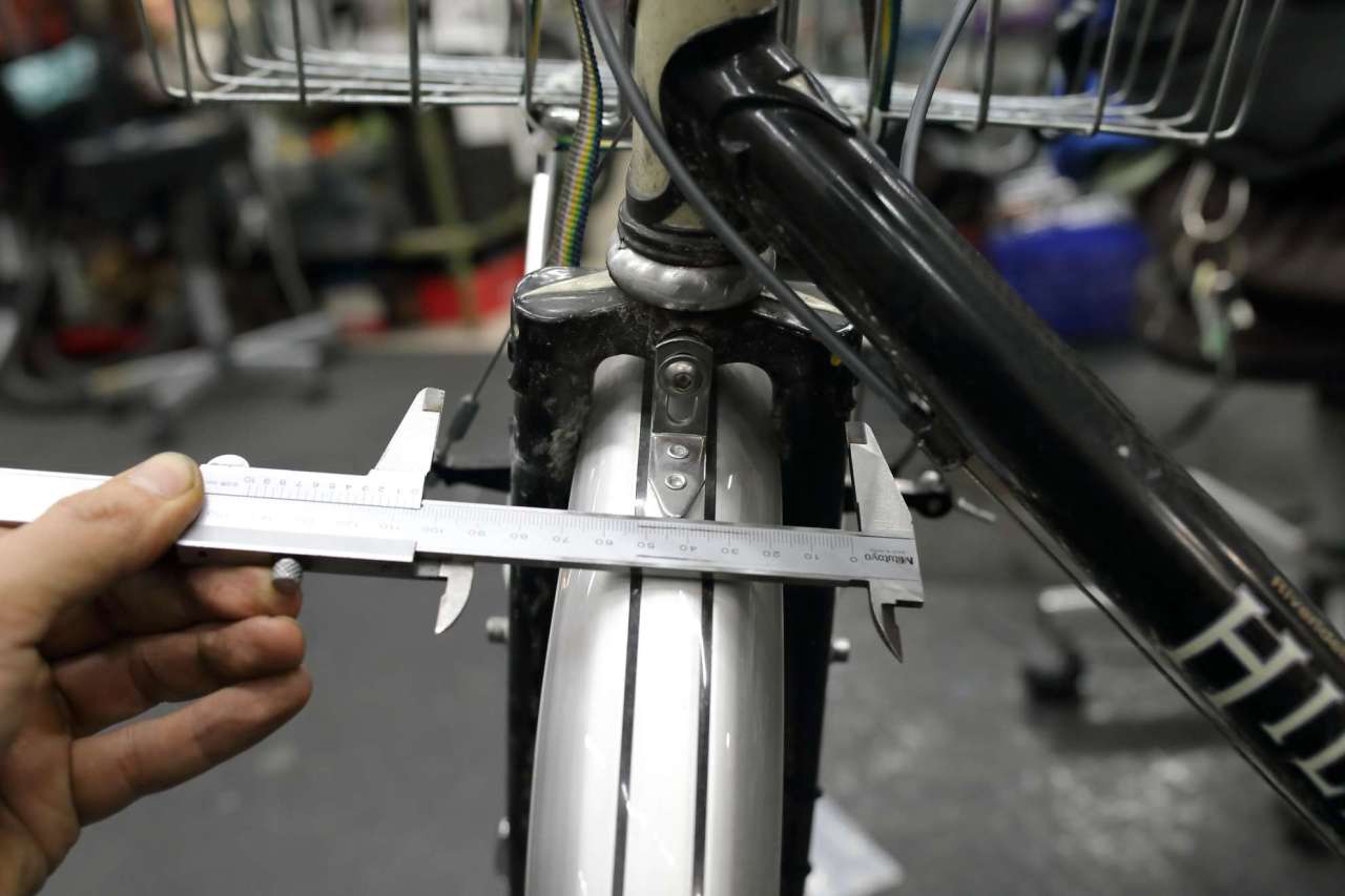 試しに55mm SKSフェンダーあてがってみました、余裕ですね。