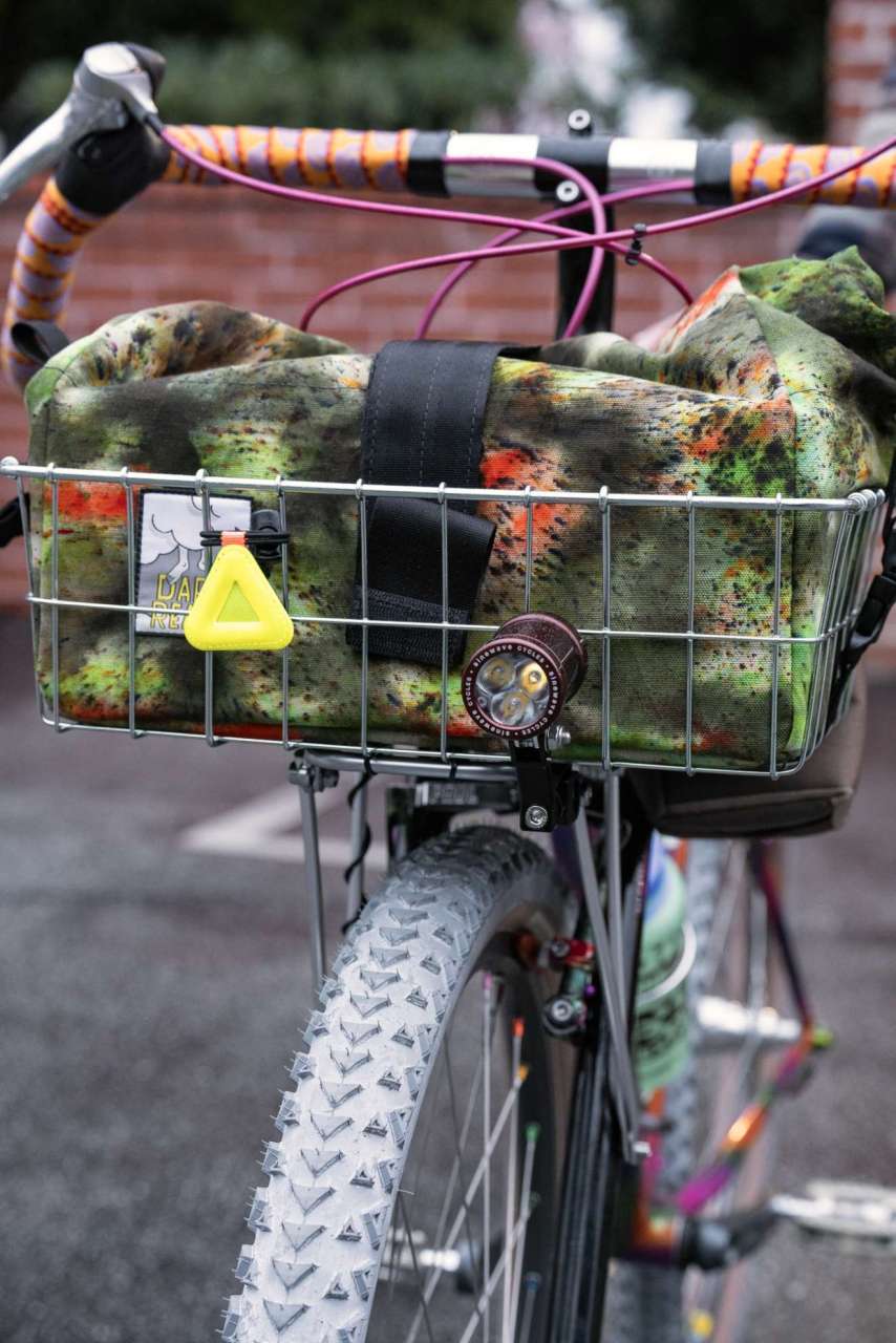 でも僕の心を射止めたのは、色褪せたコットンのバーテープ、ひび割れた汚いBROOKS、歪んだWALDバスケットを纏ったラグのフレームのバイク、そこにくっついていた蛍光三角形。それが衝撃だった。