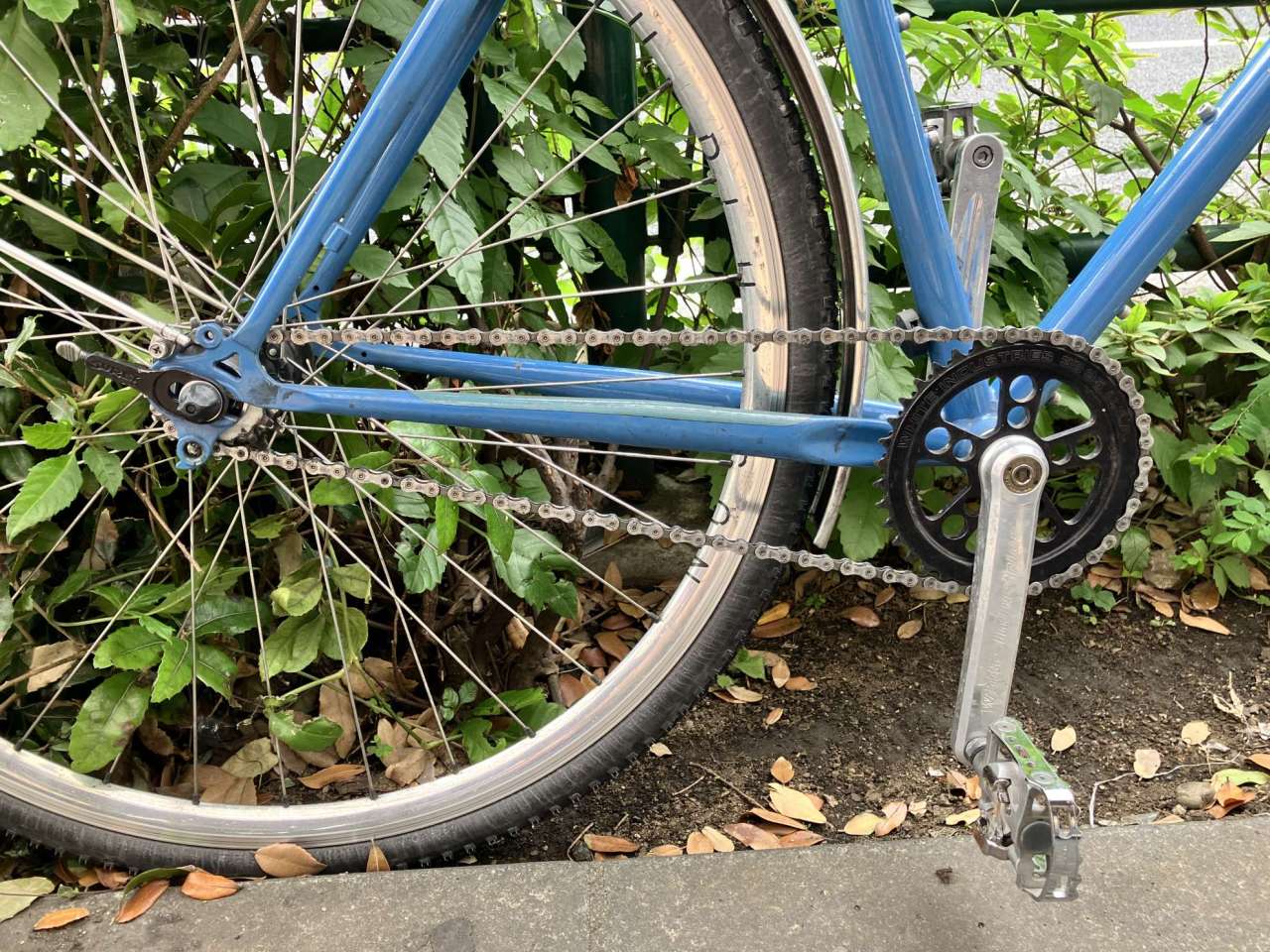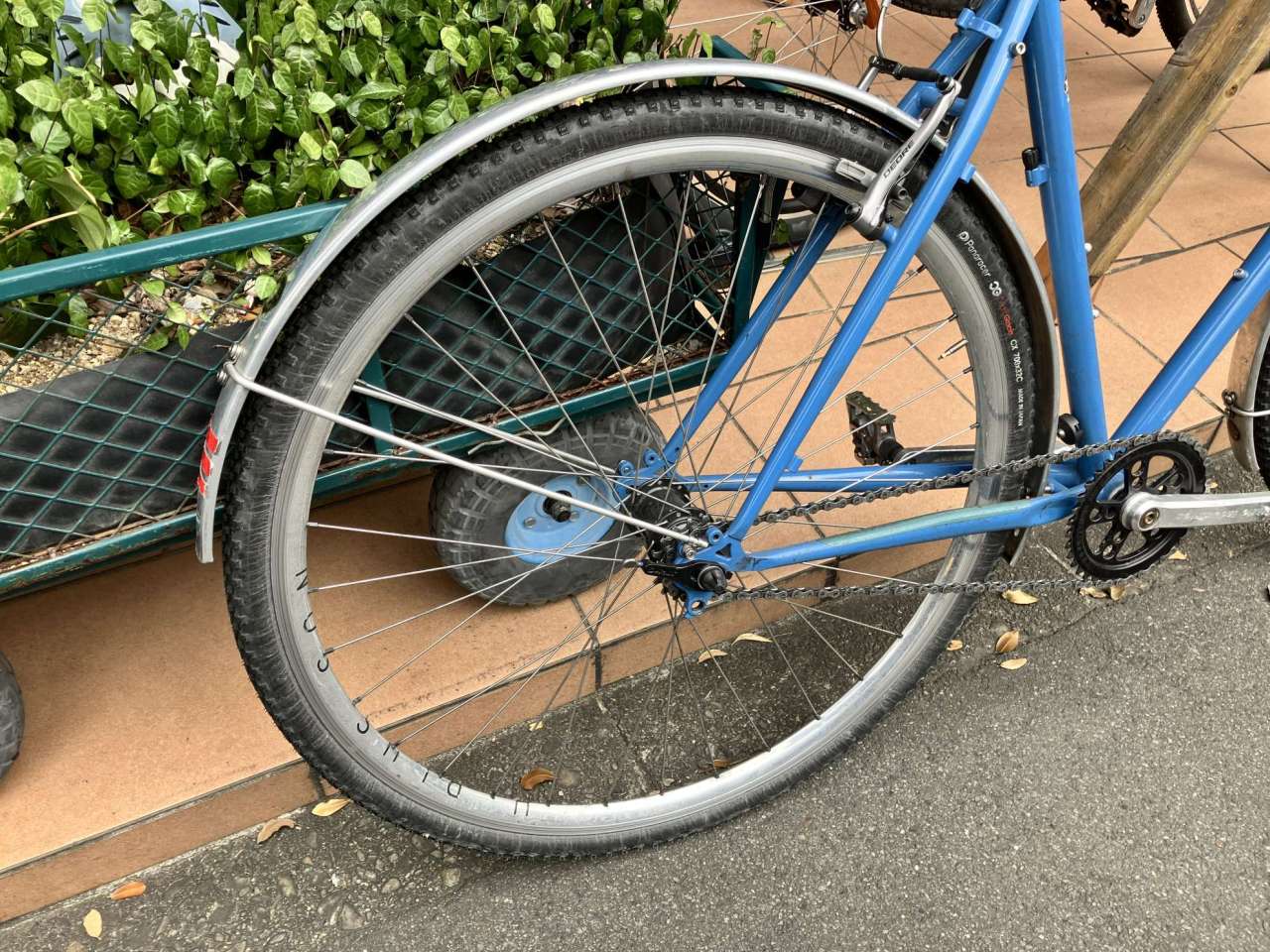 モンスタークロスにしては細めの32Cタイヤ、雨の日でも乗れるようにフルフェンダーを取り付けて乗っています。