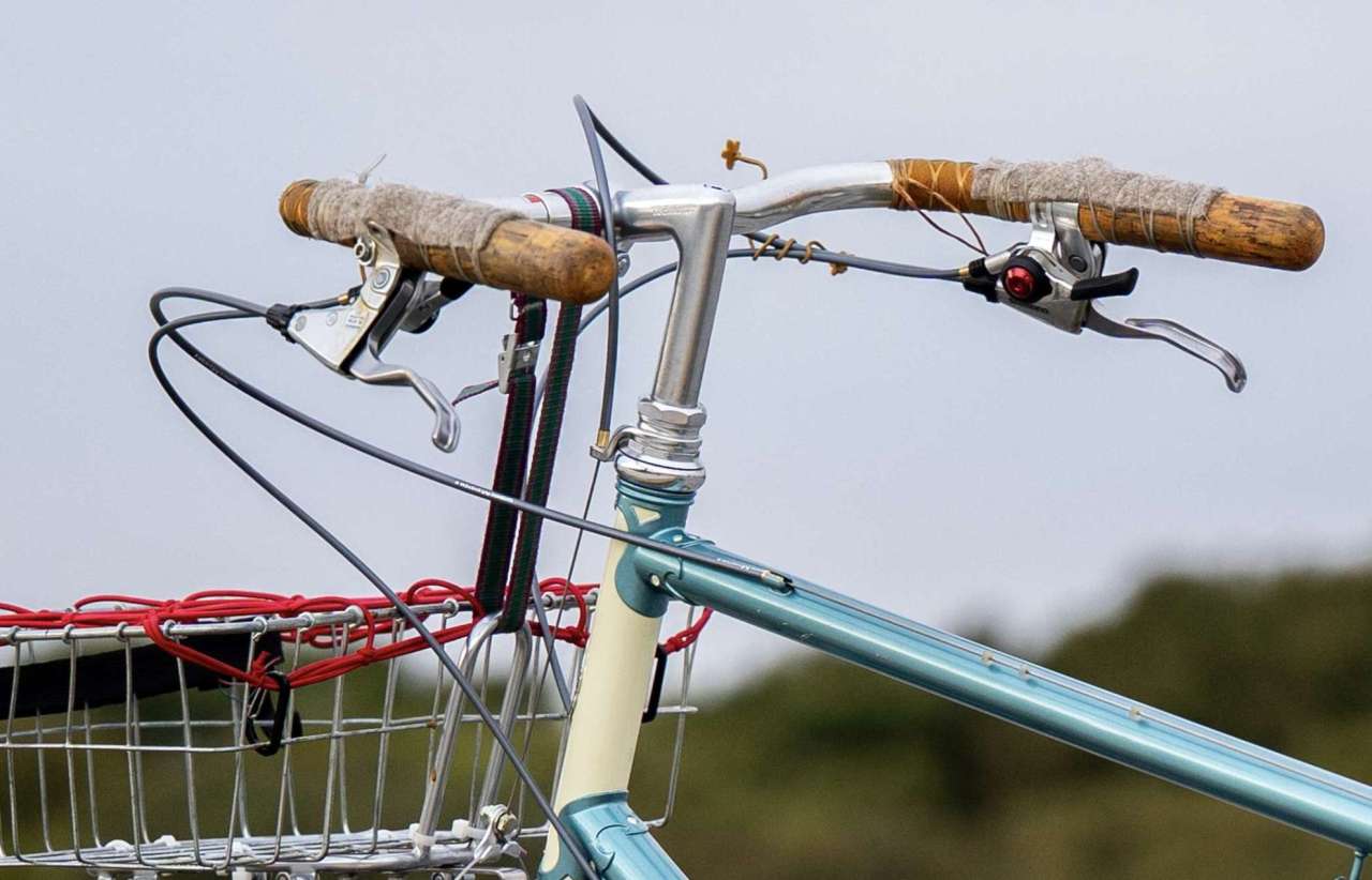 握り心地の隠し味でウールの下に仕込んだコットンバーテープや、ワインコルクで作ったバーエンド、真鍮のアウターケーブルキャップやコラムスペーサーなどはサービスになっています。