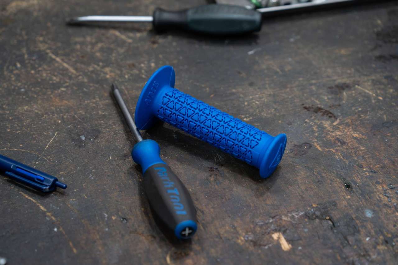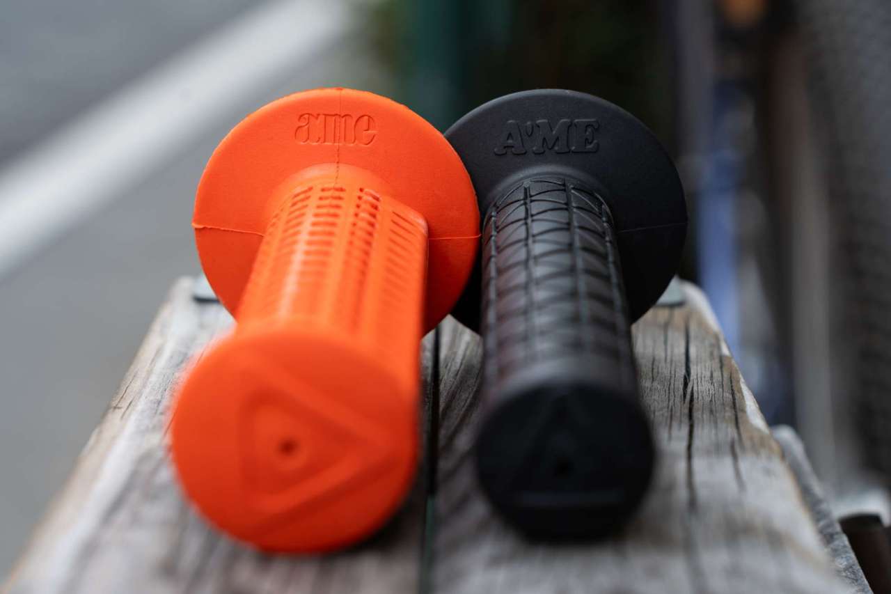A’MEに限らず、スッキリシンプルに組んだバイクなどには派手色グリップがおすすめです。