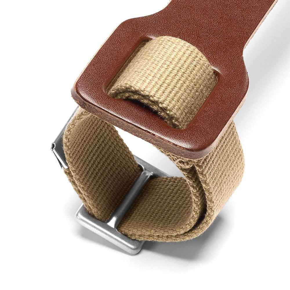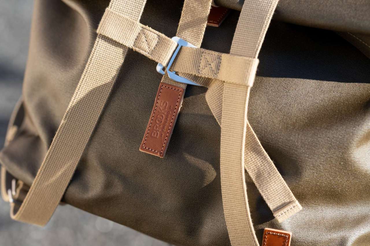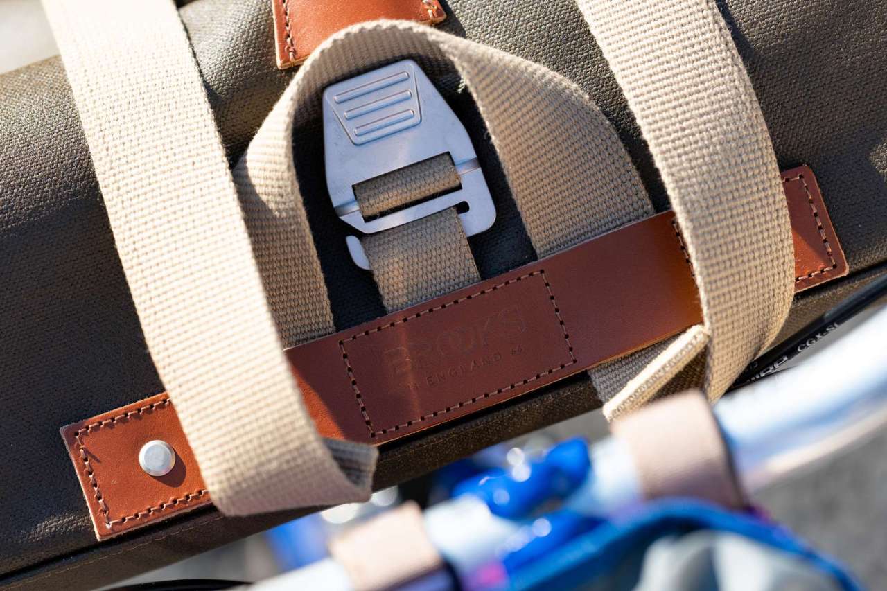 持ち手のレザー部分はBROOKSのサドルと同じ上質なレザーが贅沢に使われており使い込むことに経年変化していくストラップ。