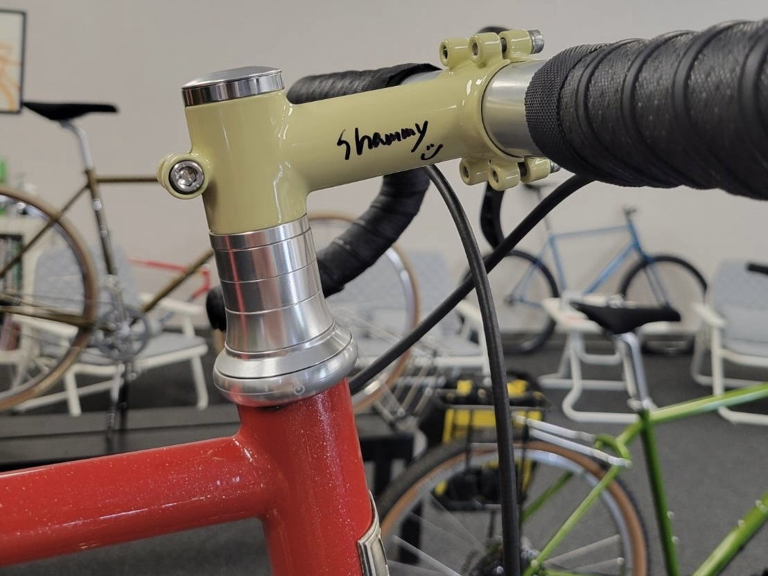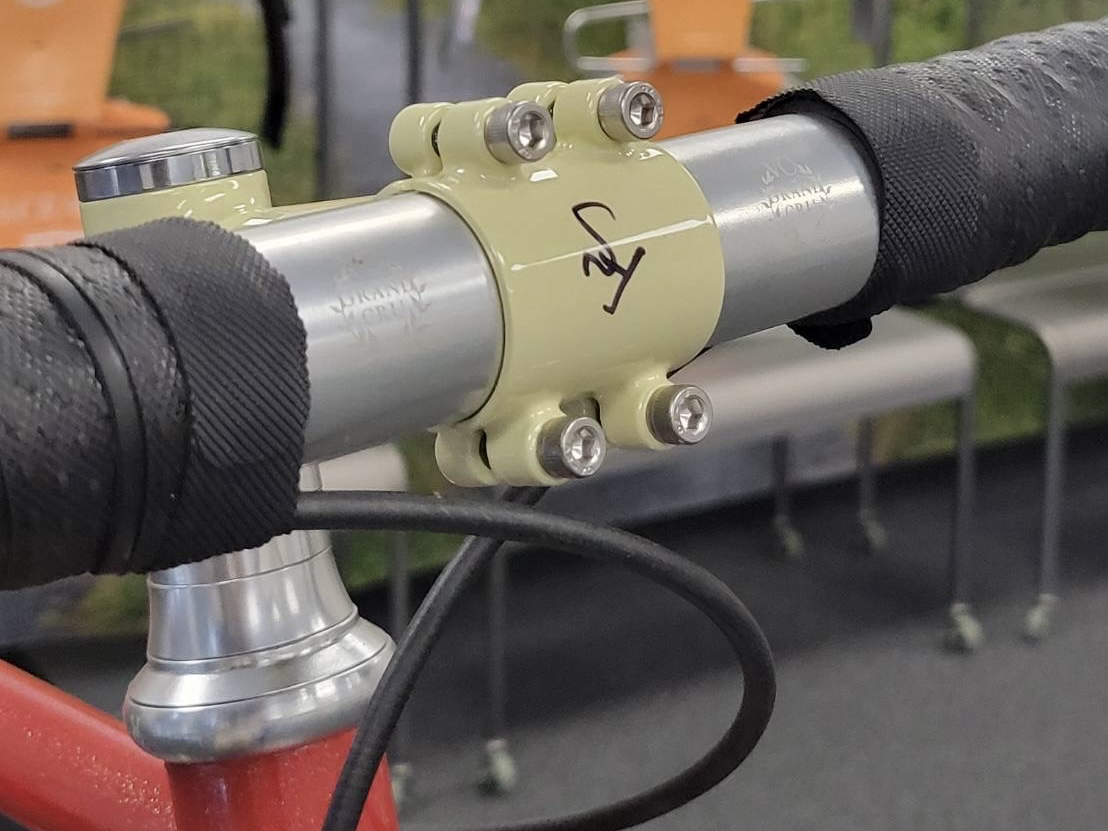 これが使われているだけでグッとフレームの細部が引き締まります。そういうのが見れるのもハンドメイドバイクの楽しいところです。