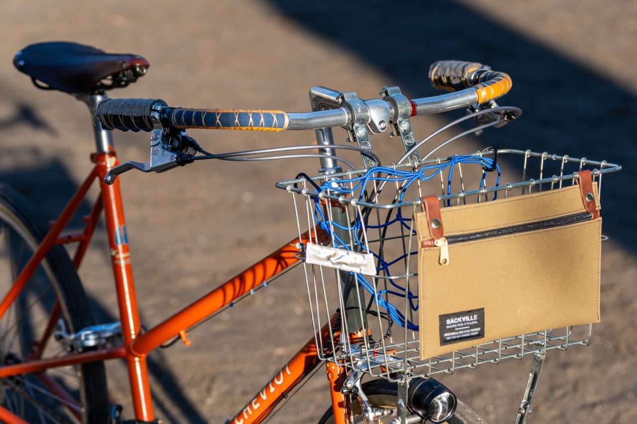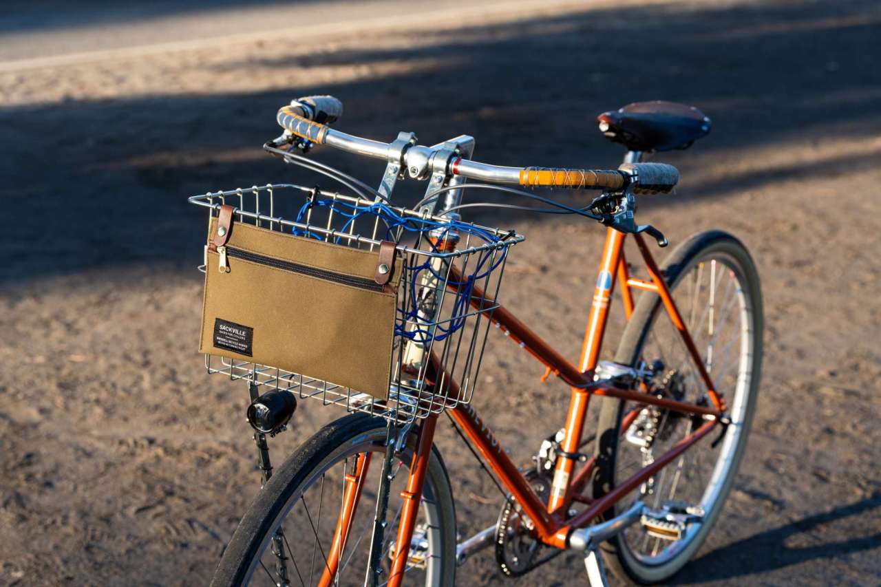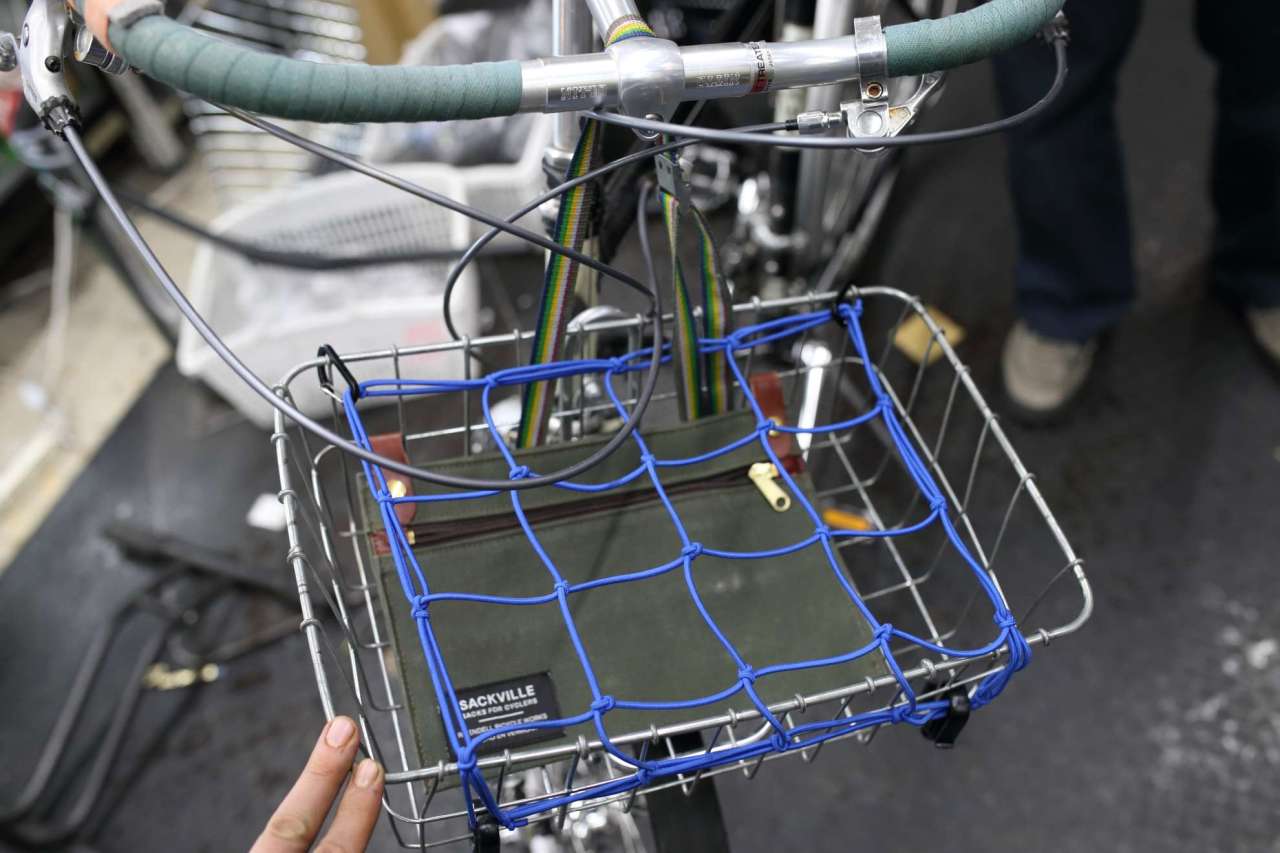 VOILE STRAPでU字ロックをバスケットに縛り付けるのもいいですが、バスケットバイク乗りの皆さん、カンガルーポーチ導入いかがでしょうか。鍵以外の細かな物もバスケットの中で保持できる、便利です。