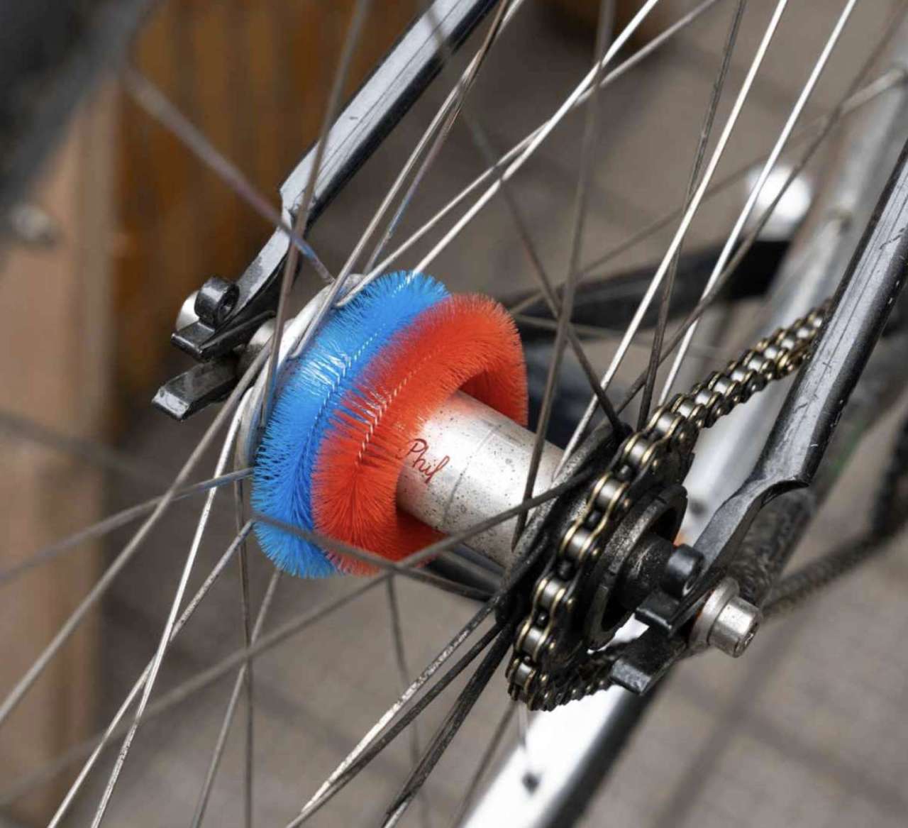 「ハブにぶら下げて走るだけで、いつの間にかハブがピカピカに」