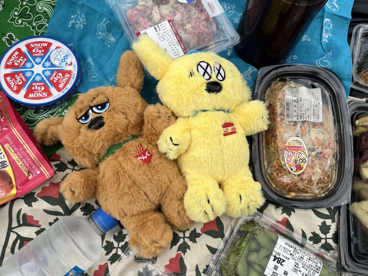 一緒に連れてったぐーやん・ぶるべえのぬいぐるみ。