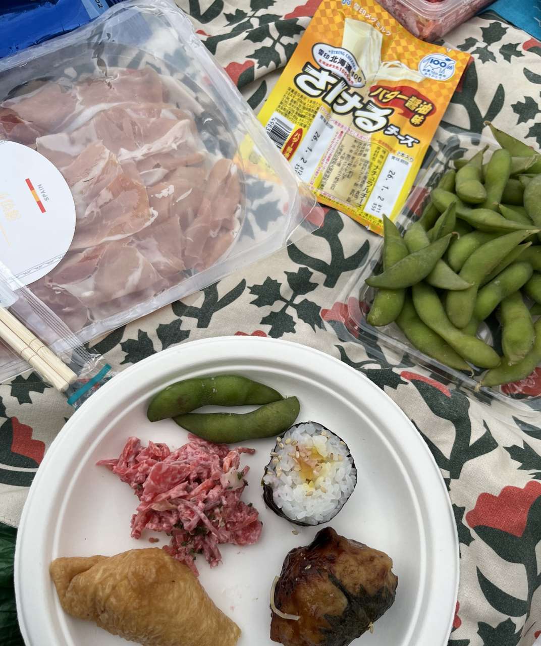 今回は軽めに好きなお惣菜やお菓子を買い込んでスタートです。