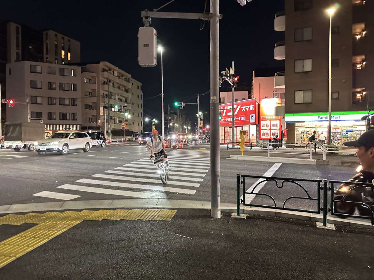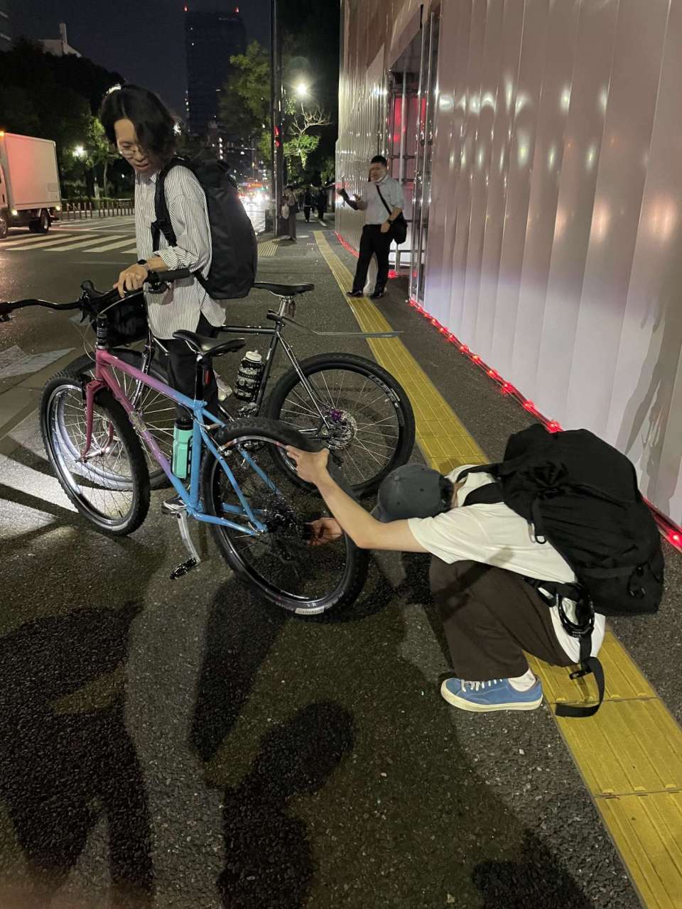20:15 東京タワーの真下でショーンが信号待ちの間に落車するアクシデント発生