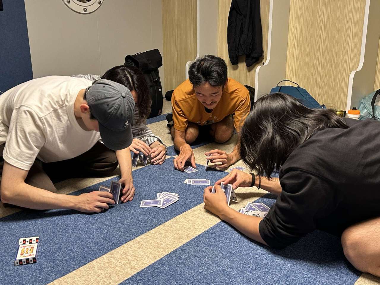23:00 消灯直前のひととき(300円のトランプを全力で楽しむ人たちの図)