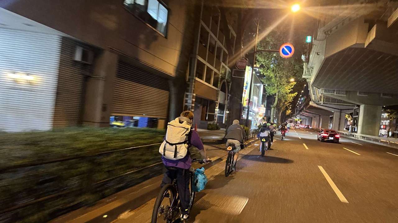 18:40 深大寺倉庫を出発(この時点ではパトリックが合流していないので9人です)
