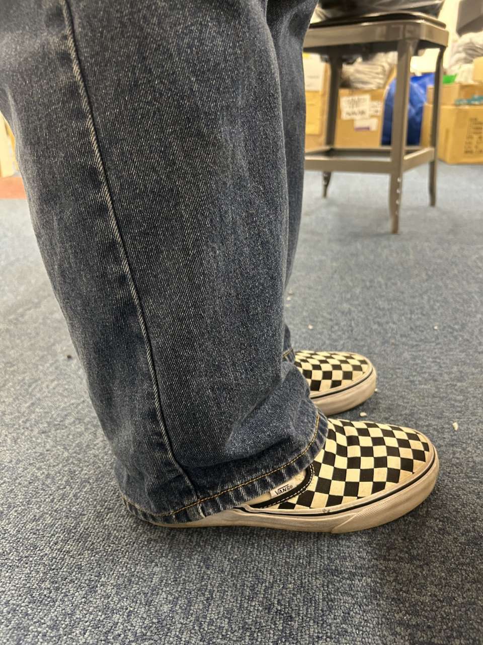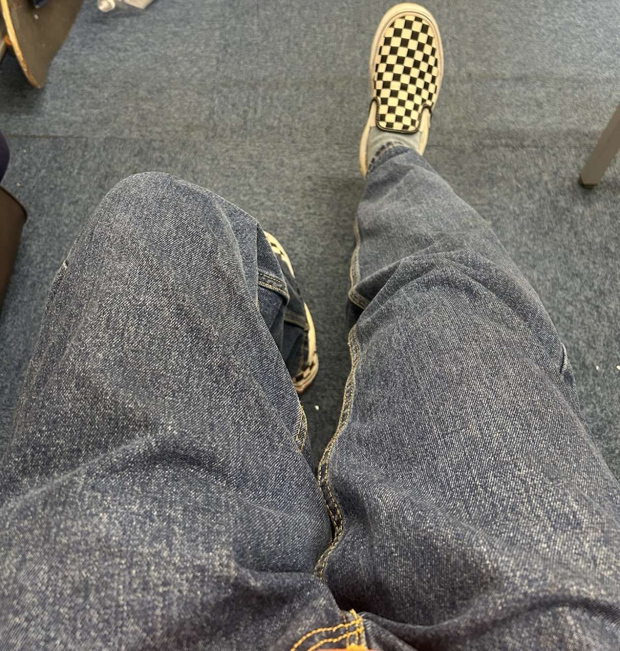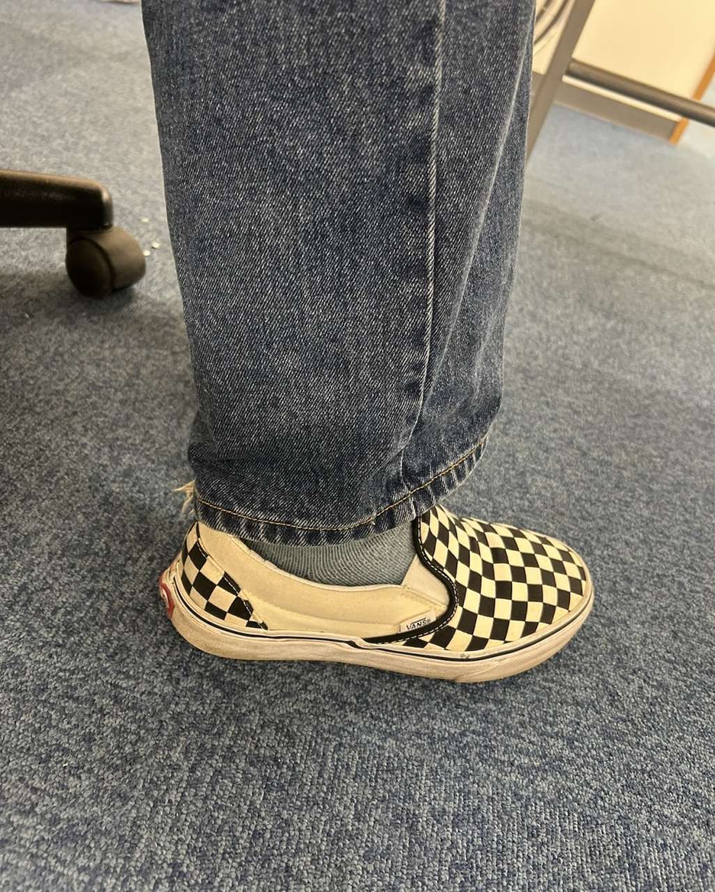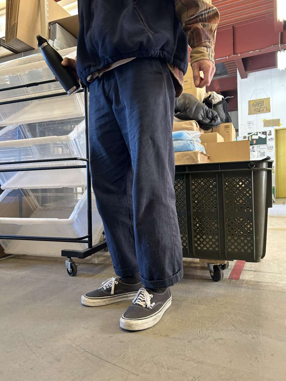 Vansと合わせた際の裾のかぶさり具合と、座った時の靴下チラ見え感がすごくお気に入り。履いてるVansは10年前カリフォルニアのVans Storeで買った何の変哲もないチェッカースリッポン。買ったことすら忘れて実家に放置されてたのを救出して履いてる。10年の時を経て毎日履いてるもんだから履き口のフェイクレザーみたいなのが劣化してボロボロ白いカスが出る。上の写真をよく見てください。