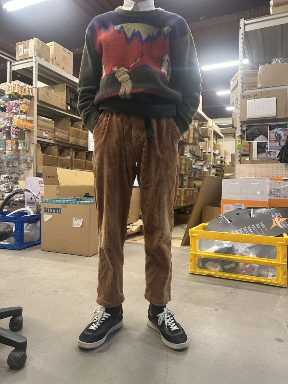 USのおじいちゃんが着てそうなゴルフのセーターと相まって全体的に“オジ感”のあるまとまりに。