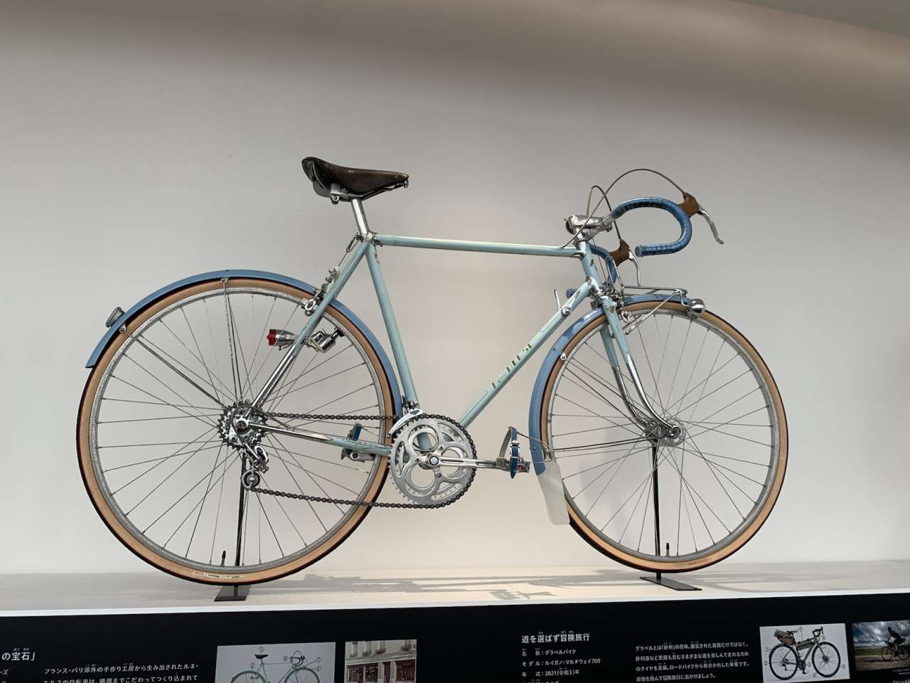 ランドナーというジャンルに対する愛好家の皆様の知識と熱量に比べたら自分は無知に等しいですが、ブルーラグで扱っているブランドの一部のバイクの成り立ちにも少なからず関係があることから、実は興味があったり。そんな無知な自分でも知っているランドナー界の伝説的バイク、Rene Herseも展示されていました。本物のオーラは凄かった。