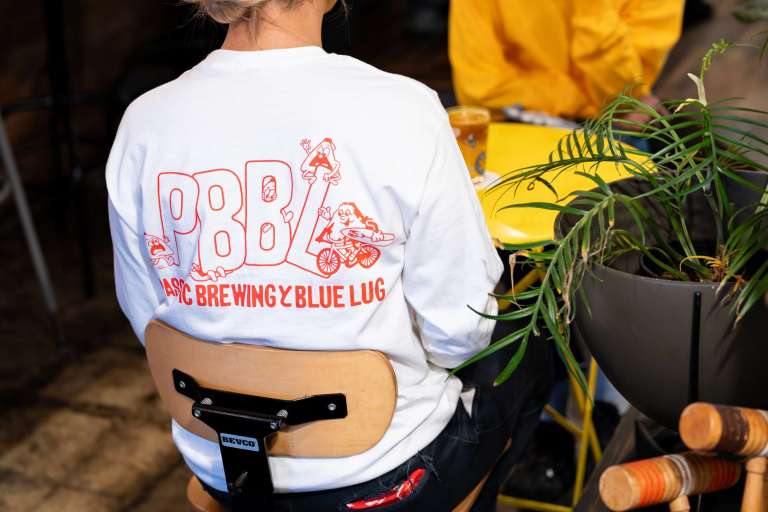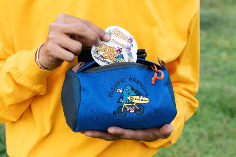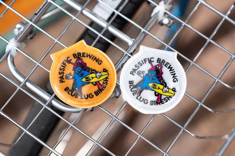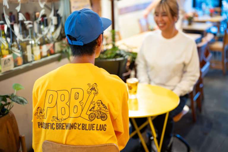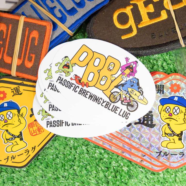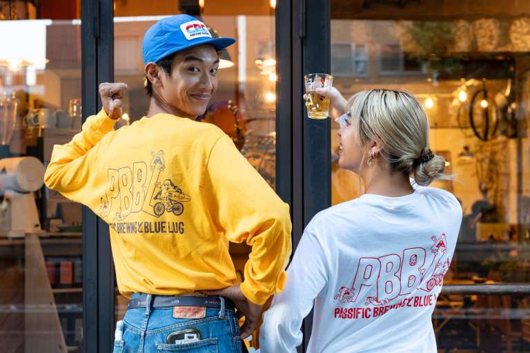 ビールと泡をイメージしたイエローとホワイトの2色展開でバックにPBBL、PassificとBlue lugのデザインが入ります。