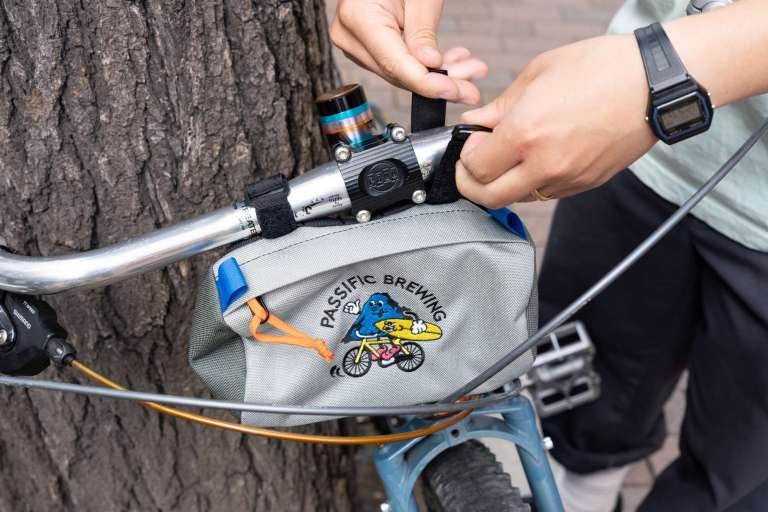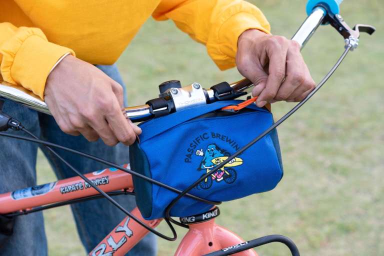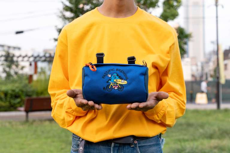 今回僕たちのハンドルバーポーチに自転車にまたがるPassificくんを刺繍させてもらいました。