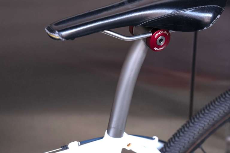 チタンのUSハンドメイドシートポストってだけで特別感は十二分だと思うのですが、ヤグラのカラーが豊富で、愛車との色合わせも楽しんでいただけるかと。