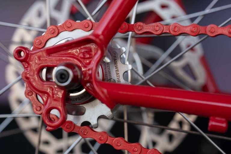 旧STRAGGLERやEVASION、MONSTERCROSSなどのハブ前後位置をフレーム側で可変できるフレームではそのままシングルスピード化することができちゃいます。