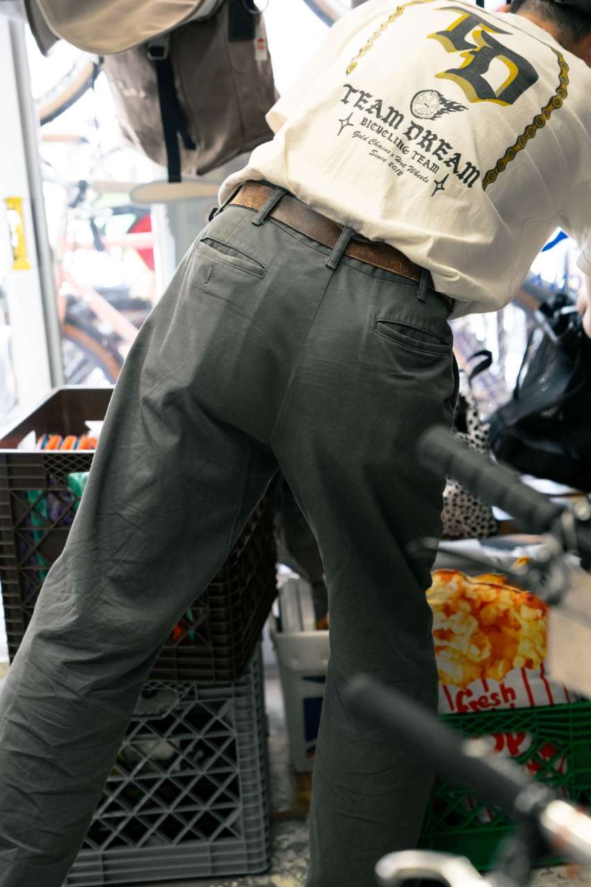 このズボンの企画・生産を担当してくれた縫製チームの鈴木くん良い仕事いますね〜。
