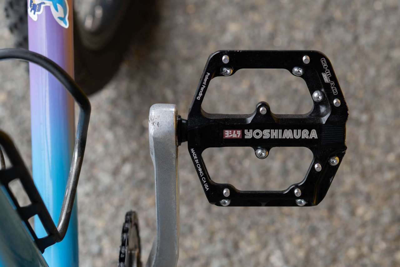 自分がサイズ25.5のスニーカーで踏み面がピッタリ隠れるくらいのサイズ感。BBハイトが低くペダルヒットを避けたいのもあっての最適解。