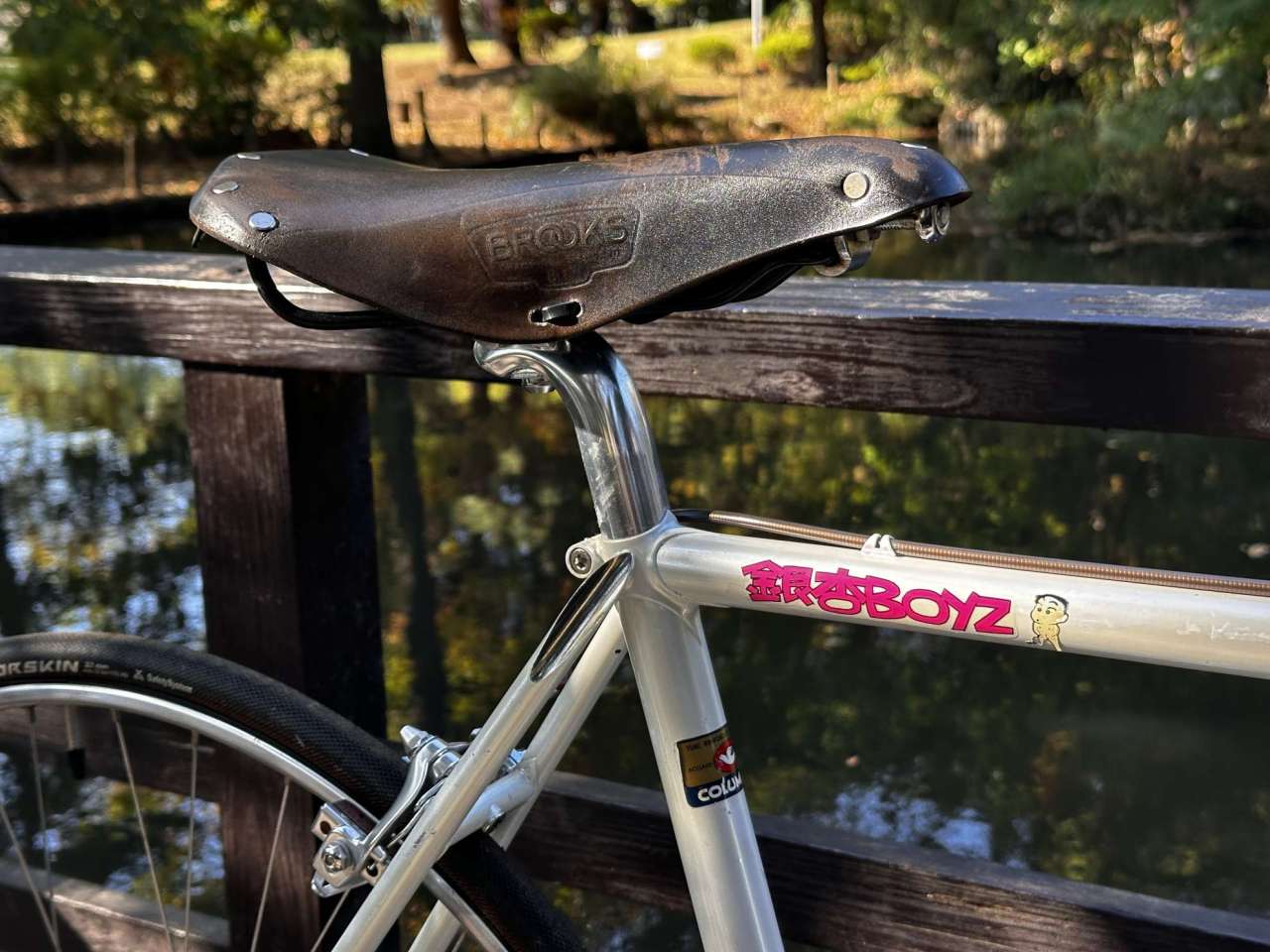 サドルは座り続けて早4年、マイサイに成長済のBROOKS b17 standardです。何時間でも座っていられます。たぶん。