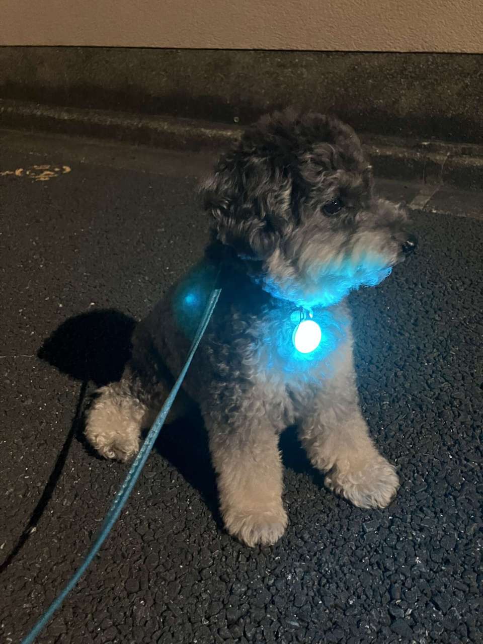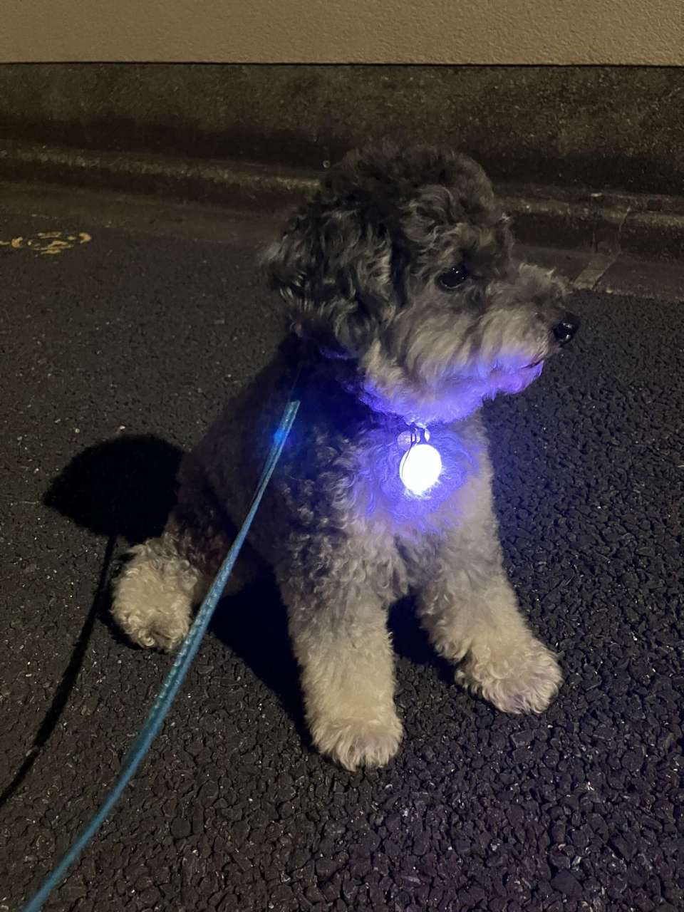 お散歩用のバッグ、ストロールサコッシュにもリフレクターが縫い付けられているので、人の視認性が高まってることは間違いなしなのですが、地面に近い低い位置で歩いている犬はきっと自転車の人、バイクの人、車の人には認識されてないと思うんですよね🥹