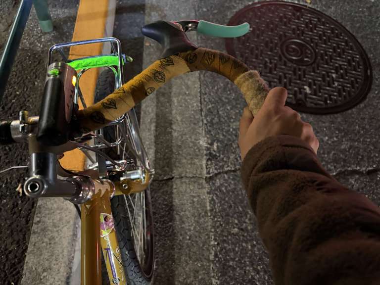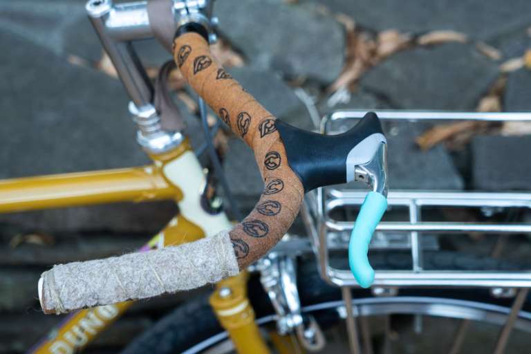 ひとまず僕はバーテープの上から糸で巻いてみたんですが、こないだおもろいことに気がつきました。